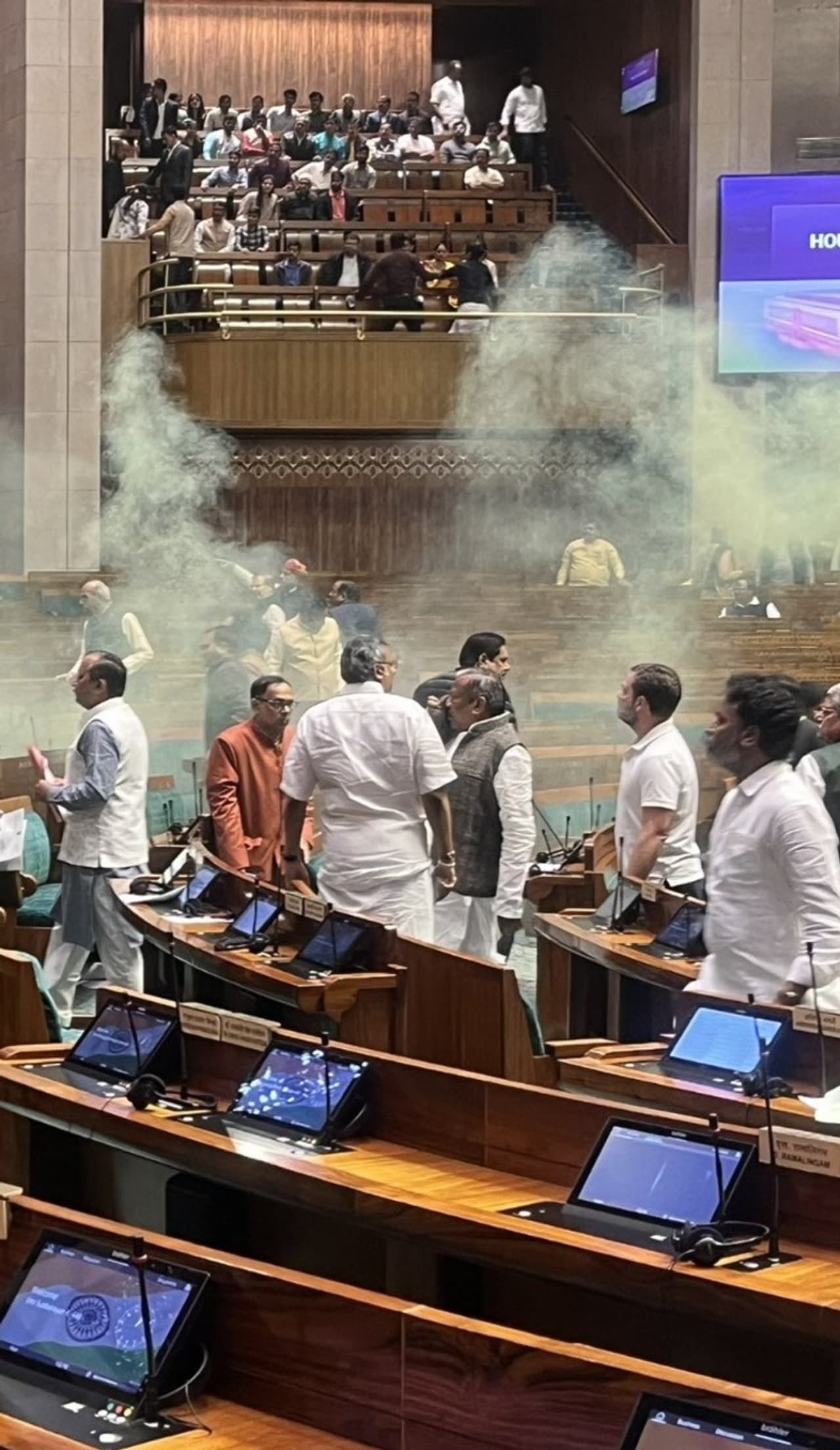 ওয়েলের মধ্যেই ব্যাপক ধোঁয়া সৃষ্টি করে ফাটে কাঁদানে গ্যাস। চোখে জল নিয়ে ছোটাছুটি শুরু করেন সমস্ত মন্ত্রী- আমলারা। উল্লেখ্য, ২২ বছর আগে, ২০০১ সালের সংসদ হামলা ঘটেছিল এই একই তারিখে, ১৩ ডিসেম্বর। ২০২৩ সালে এসে সেই একই ঘটনার পুনরাবৃত্তি।