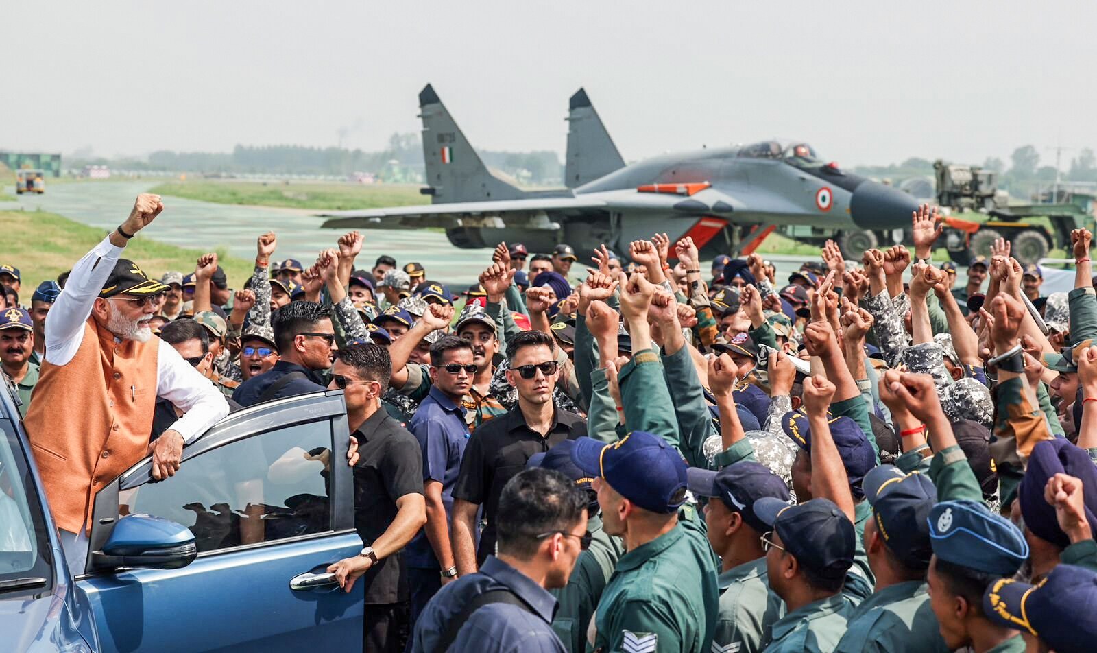 মোদী কঠোর সতর্কবার্তা জারি করার সময় তাঁর কণ্ঠে দৃঢ়তা প্রতিধ্বনিত হয়েছিল, "ভারতে নিরীহ মানুষের রক্তপাতের একটাই পরিণতি হবে -- ধ্বংস এবং মহাধ্বংস।" আকাশের অভিভাবকদের সঙ্গে কাঁধে কাঁধ মিলিয়ে দাঁড়িয়ে প্রধানমন্ত্রী মোদী ভারতের প্রতিরক্ষা বাহিনীর সাহস, প্রতিশ্রুতি এবং অতুলনীয় শক্তিকে অভিবাদন জানিয়ে শত্রুদের কাছে একটি জোরালো এবং স্পষ্ট বার্তা পাঠিয়েছেন। বিমানবাহিনীর কর্মীদের উদ্দেশ্যে প্রধানমন্ত্রী নরেন্দ্র মোদি বলেছেন, "শত্রুরা ভারতীয় সশস্ত্র বাহিনীকে উস্কানি দেওয়ার চেষ্টা করেছিল, কিন্তু আপনারা সীমান্ত থেকে শক্তি এবং নির্ভুল লক্ষ্যের মাধ্যমে তাদের কড়া প্রতিক্রিয়া জানিয়েছেন। তাদের মূল কর্মীরা নিহত হয়েছে। নয়টি জঙ্গি আস্তানা ধ্বংস করা হয়েছে এবং ১০০ রও বেশি জঙ্গিকে নিকেশ করা হয়েছে। এখন, তারা স্পষ্টভাবে বুঝতে পেরেছে -- ভারতের বিরুদ্ধে নজর দেওয়ার একটাই পরিণতি: ধ্বংস। আর নিরীহ ভারতীয়দের রক্তপাতের একটাই ফলাফল হবে: ধ্বংস -- এবং সম্পূর্ণ ধ্বংস।"