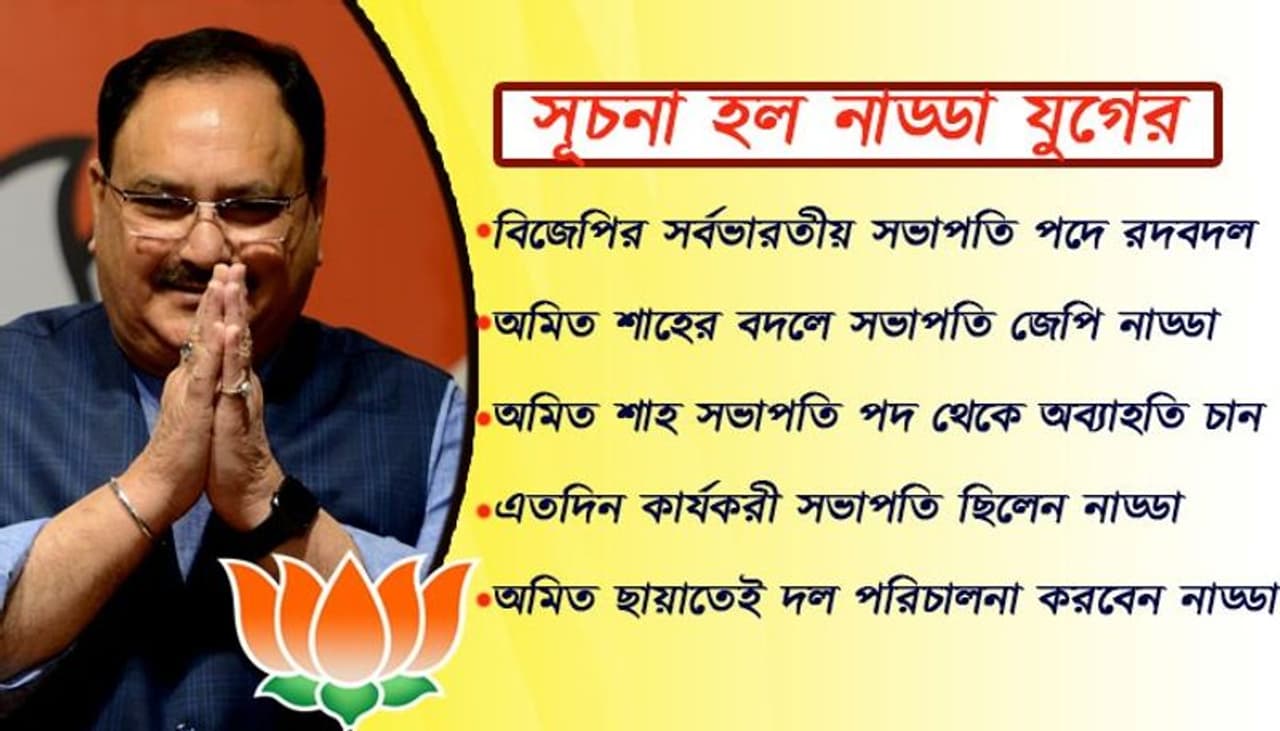 গতবছর জুনে দেশের স্বরাষ্ট্রমন্ত্রীর দায়িত্ব গ্রহণ করেন বিজেপির সর্বভারতীয় সভাপতি অমিত শাহ। মন্ত্রিসভার গুরুর্ত্বপূর্ণ মন্ত্রকের দায়িত্ব পাওয়া অমিতের পক্ষে দলে পরিচালনায় পুরোপুরি সময় দেওয়া সম্ভব ছিল না। তখনই সর্বভারতীয় সভাপতি পদে বদল আনা প্রয়োজন বলে বুঝতে পারে গেরুয়া শিবির। সেইকারণে জিপ নাড্ডার হাতে দেওয়া হয় কার্যনির্বাহী সভাপতির দায়িত্ব। তবে এদিন থেকে শাহের বদলে বিজেপির পূর্ণ সময়ের সর্বভারতীয় সভাপতি হলেন নাড্ডা।
