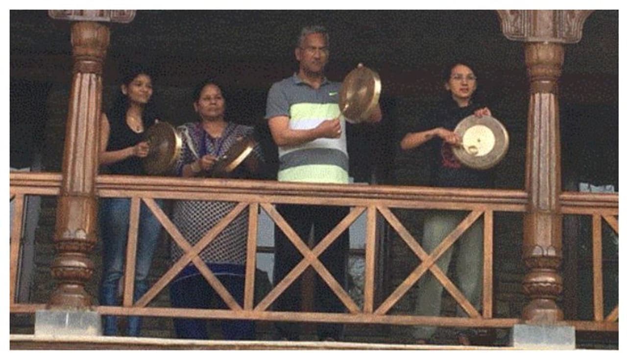 বিকেল ৫ টায় পরিবারের অন্যান্য সদস্যদের নিয়ে হাততালি দিয়ে করোনা যুদ্ধে সামিল হন স্পিকার ওম বিড়লা।