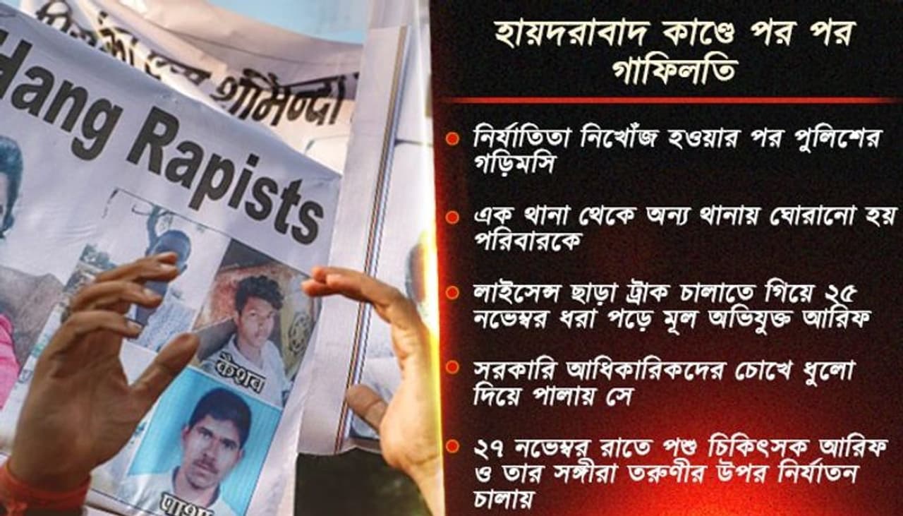 হায়দরাবাদে নির্যাতিতা পশু চিকিৎসক নিখোঁজ হওয়ার পরে যে পুলিশ তাঁকে খুঁজে বের করার ক্ষেত্রে দায়সারা মনোভাব দেখিয়েছিল, তা আগেই প্রমাণিত হয়েছিল। এবার সামনে এল আরও এক চাঞ্চল্যকর অভিযোগ। হায়দরাবাদে পশু চিকিৎসককে ধর্ষণ এবং খুনের ঘটনায় মূল অভিযুক্ত মহম্মদ আলি ওরফে আরিফ প্রায় দু' বছর ধরে লাইসেন্স ছাড়াই ট্রাক চালাচ্ছিল। এমন কী ওই তরুণীর উপরে নির্যাতনের আটচল্লিশ ঘণ্টা আগে সরকারি আধিকারিকরা তাকে ধরলেও ট্রাক নিয়ে পালিয়ে গিয়েছিল ধূর্ত আলি।