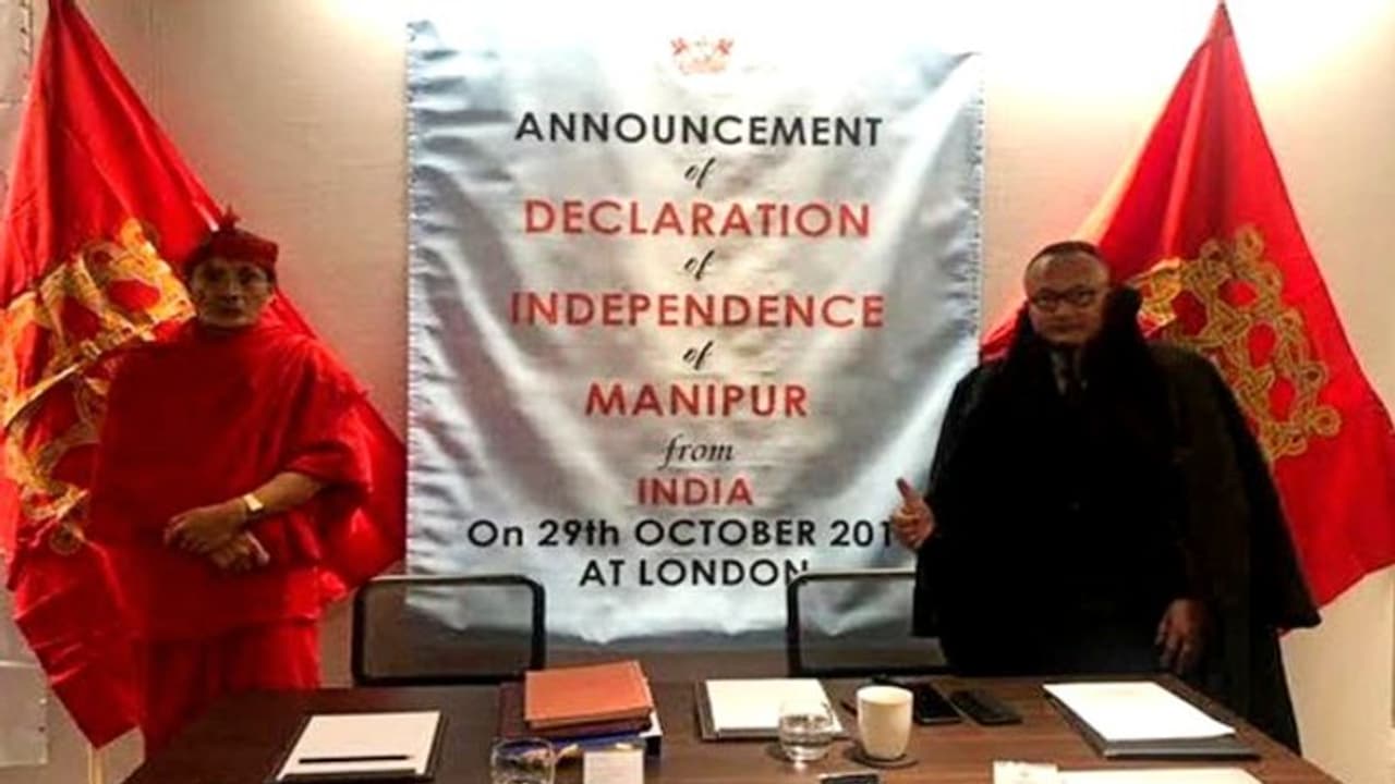 ভারত থেকে স্বাধীন হওয়ার কথা ঘোষণা করল মণিপুর লন্ডনে বসে দুই বিচ্ছিন্নতাবাদী নেতা রাজার নাম করে স্বাধীন রাষ্ট্র গঠনের দাবি জানালেন ঘটনার তীব্র নিন্দা করলেন মণিপুরের রাজা লেইসেম্বা সানাজাওবা স্বয়ং বিষয়টিকে এনআইএ-র হাতে তুলে দেওয়ার কথা ভাবছে রাজ্য প্রশাসন