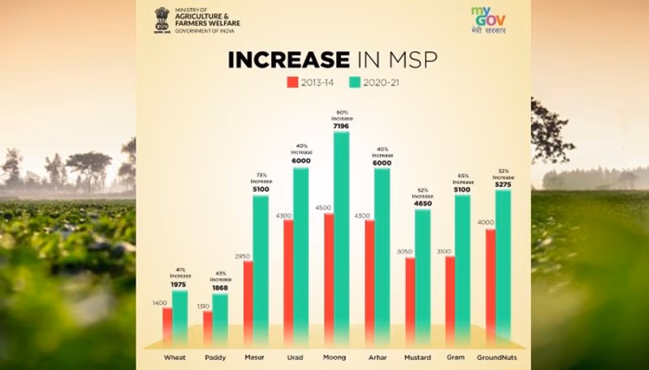 ধানের ক্ষেত্রে সাহায়ক মূল্য ৪৩ শতাংশ বাড়িয়ে করা হয়েছে ১৮৬৪ শতাংশ। ২০১৩-১৪ সালের তুলনায় মুসুর ডালের ক্ষেত্রে সহায়ক মূল্য ৭৩ শতাংশ বেড়ে হয়েছে ৫১০০ টাকা। কলাইয়ে ডালের ক্ষেত্রে ৬০ শতাংশ বেড়ে হয়েছে ৭১৯৬ টাকা। অড়হর ডালের ক্ষেত্রে ৪০ শতাংশ বেড়ে হয়েছে ৬০০০ টাকা। সরষের ক্ষেত্রে সহায়ক মূল্য বাড়ানো হয়েছে ৫২ শতাংশ। কৃষকরা পাবেন ৪৬৫০ টাকা।