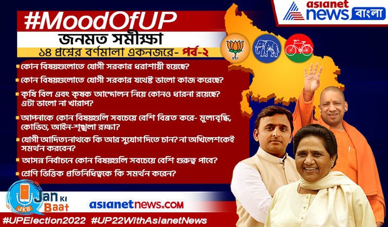 চলতি বছরের বিধানসভা নির্বাচনের মধ্যে সবচেয়ে গুরুত্বপূর্ণ ছিল পশ্চিমবঙ্গ বিধানসভা নির্বাচন। এর সঙ্গে অবশ্যেই একটা গুরুত্ব তৈরি করেছিল অসম এবং তামিলনাড়ুর বিধানসভা নির্বাচন। রাজনৈতিক মহলের মতে ২০২৪-এর লোকসভা নির্বাচনের আগে এই বিধানসভা নির্বাচনগুলি অতি গুরুত্বপূর্ণ। এই মুহূর্তে আরও একটি বিধানসভা নির্বাচন সামনে রয়েছে যা নিয়ে ইতিমধ্যেই তোড়জোড় শুরু করে দিয়েছে রাজনৈতিক দলগুলি। আর এই বিধানসভা নির্বাচন হল উত্তরপ্রদেশের। বলতে গেলে ২০১৭ সালে বিশাল জয় নিয়ে উত্তরপ্রদেশে সরকার তৈরি করে বিজেপি। এমনকী, যোগী আদিত্যনাথ-কে মুখ্যমন্ত্রী হিসাবে তুলে ধরে আরও এক বড় রাজনৈতিক চাল চেলেছিল গেরুয়া শিবির। প্রায় ৫ বছর শাসনকাল পূর্ণ করতে চলেছে যোগী আদিত্যনাথের সরকার। ২০২২ সালের শুরুতেই সেখানে বিধানসভা ভোট। খাতায় কলমের হিসাব বলছে এখনও ৭ মাস রয়েছে উত্তরপ্রদেশের যোগী সরকারের মেয়াদ। তার আগেই উত্তরপ্রদেশের মনের মেজাজ বুঝতে ময়দানে নেমে পড়েছে এশিয়ানেট নিউজ। জনমত সমীক্ষায় নাম করা সংস্থা জন কি বাত-এর সঙ্গে এশিয়ানেট নিউজ একটা তথ্যানুসন্ধান চালায়। যার নাম হ্যাসট্যাগ মুড অফ ইউপি (#MoodOfUP)-যা আসলে একটি জনমত সমীক্ষা(Opinion Poll)। এই সমীক্ষার মধ্যে দিয়ে উত্তরপ্রদেশের মানুষের বর্তমান রাজনৈতিক পরিস্থিতি, আর্থ সামাজিক অবস্থা এবং নাগরিক সুযোগ-সুবিধা প্রাপ্তি-র অভিজ্ঞতার একটা ঝোঁকের সন্ধান করা হয়েছে। আর এইখান থেকে পাওয়া সমীক্ষার মাধ্যমে উত্তরপ্রদেশের আগামী বিধানসভা নির্বাচনের আগে মানুষের দৃষ্টিকোণের সন্ধান করা হয়েছে। ভোট আসতে আসতে সন্দেহ নেই যে এই মানসিকতা ও দৃষ্টিকোণের অনেকটাই পরিবর্তন ঘটবে- ফলে সেক্ষেত্রের তথ্যের তারতম্য হওয়াটাও এক্কেবারে নিশ্চিত।