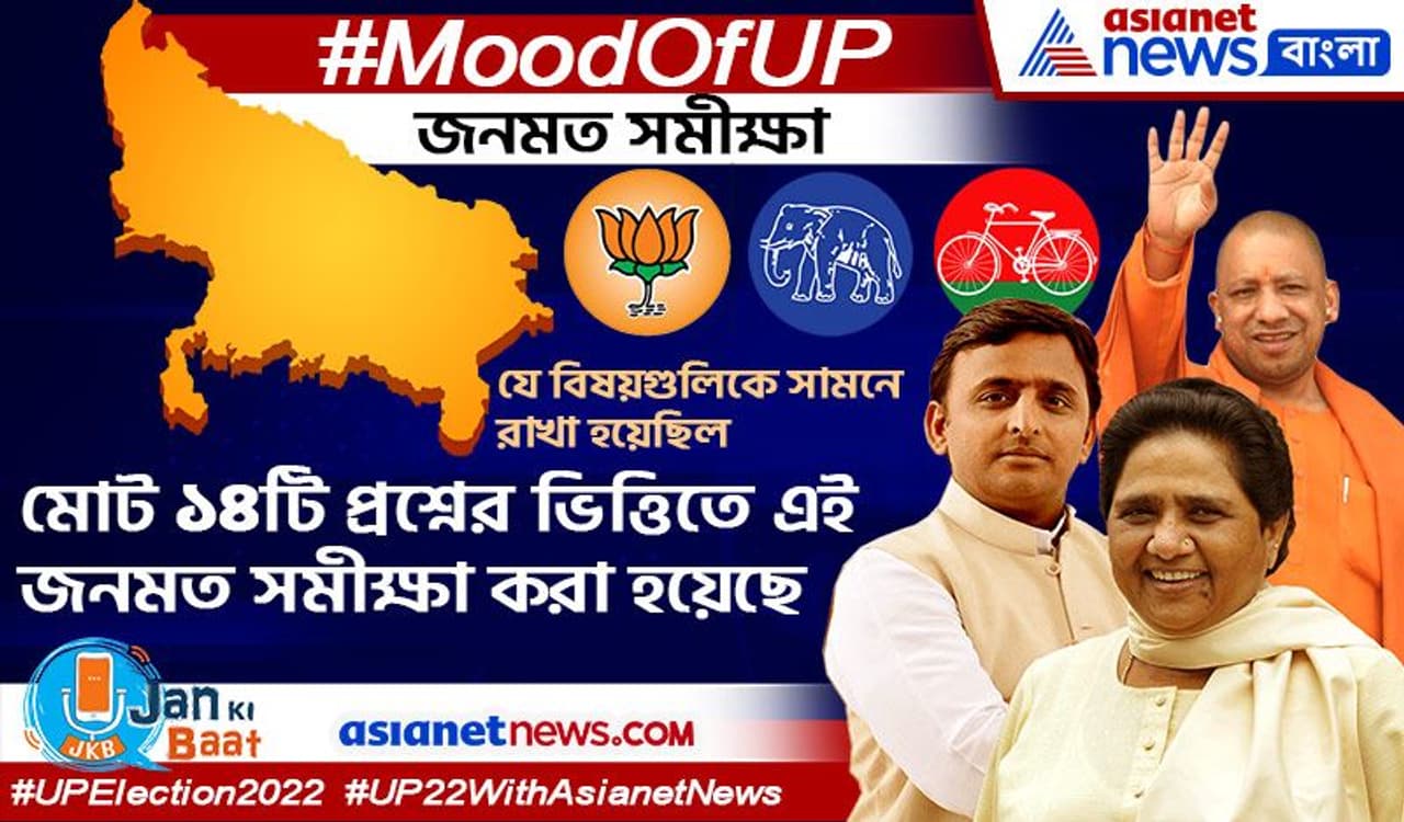 চলতি বছরের বিধানসভা নির্বাচনের মধ্যে সবচেয়ে গুরুত্বপূর্ণ ছিল পশ্চিমবঙ্গ বিধানসভা নির্বাচন। এর সঙ্গে অবশ্যেই একটা গুরুত্ব তৈরি করেছিল অসম এবং তামিলনাড়ুর বিধানসভা নির্বাচন। রাজনৈতিক মহলের মতে ২০২৪-এর লোকসভা নির্বাচনের আগে এই বিধানসভা নির্বাচনগুলি অতি গুরুত্বপূর্ণ। এই মুহূর্তে আরও একটি বিধানসভা নির্বাচন সামনে রয়েছে যা নিয়ে ইতিমধ্যেই তোড়জোড় শুরু করে দিয়েছে রাজনৈতিক দলগুলি। আর এই বিধানসভা নির্বাচন হল উত্তরপ্রদেশের। বলতে গেলে ২০১৭ সালে বিশাল জয় নিয়ে উত্তরপ্রদেশে সরকার তৈরি করে বিজেপি। এমনকী, যোগী আদিত্যনাথ-কে মুখ্যমন্ত্রী হিসাবে তুলে ধরে আরও এক বড় রাজনৈতিক চাল চেলেছিল গেরুয়া শিবির। প্রায় ৫ বছর শাসনকাল পূর্ণ করতে চলেছে যোগী আদিত্যনাথের সরকার। ২০২২ সালের শুরুতেই সেখানে বিধানসভা ভোট। খাতায় কলমের হিসাব বলছে এখনও ৭ মাস রয়েছে উত্তরপ্রদেশের যোগী সরকারের মেয়াদ। তার আগেই উত্তরপ্রদেশের মনের মেজাজ বুঝতে ময়দানে নেমে পড়েছে এশিয়ানেট নিউজ। জনমত সমীক্ষায় নাম করা সংস্থা জন কি বাত-এর সঙ্গে এশিয়ানেট নিউজ একটা তথ্যানুসন্ধান চালায়। যার নাম হ্যাসট্যাগ মুড অফ ইউপি (#MoodOfUP)-যা আসলে একটি জনমত সমীক্ষা(Opinion Poll)। এই সমীক্ষার মধ্যে দিয়ে উত্তরপ্রদেশের মানুষের বর্তমান রাজনৈতিক পরিস্থিতি, আর্থ সামাজিক অবস্থা এবং নাগরিক সুযোগ-সুবিধা প্রাপ্তি-র অভিজ্ঞতার একটা ঝোঁকের সন্ধান করা হয়েছে। আর এইখান থেকে পাওয়া সমীক্ষার মাধ্যমে উত্তরপ্রদেশের আগামী বিধানসভা নির্বাচনের আগে মানুষের দৃষ্টিকোণের সন্ধান করা হয়েছে। ভোট আসতে আসতে সন্দেহ নেই যে এই মানসিকতা ও দৃষ্টিকোণের অনেকটাই পরিবর্তন ঘটবে- ফলে সেক্ষেত্রের তথ্যের তারতম্য হওয়াটাও এক্কেবারে নিশ্চিত।