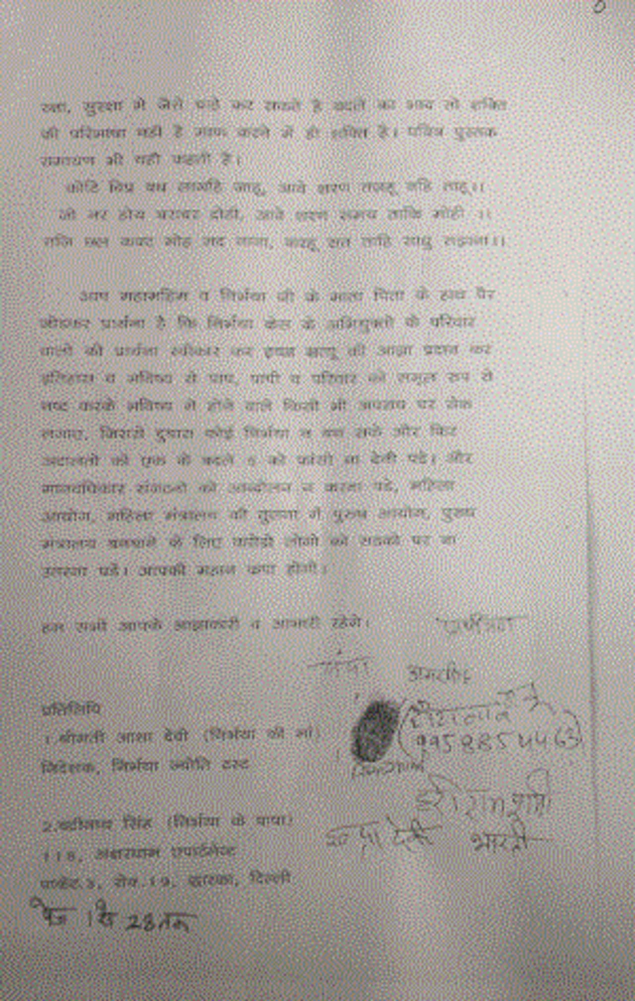 রবিবার রাষ্ট্রপতির কাছে চিঠি লিখেছে ৪ ধর্ষকের পরিবারের সদস্যরা। যাতে রাষ্ট্রপতির পাশাপাশি নির্ভয়ার মা-বাবার কাছে অনুরোধ করা হয়েছে," ইউথেনশিয়ার অনুমতি দেওয়া হেক, যাতে নির্ভয়ার মত আর কোনও অপরাধ সংঘটিত না হয় ।" হিন্দিতে লেখা হয়েছে এই চিঠি। সাজা মকুবের আবেদন তারা করছেন না বলে জানান হয়েছে চিঠিতে।