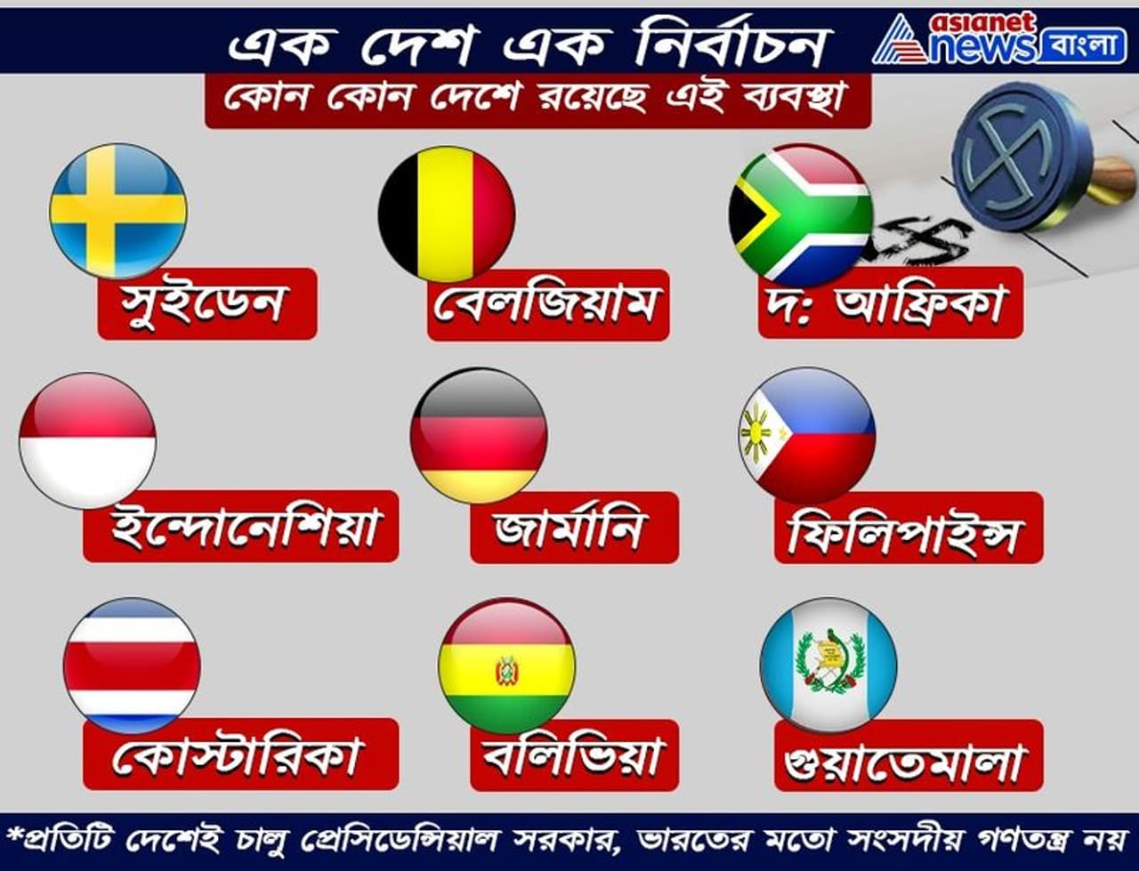 এক দেশ এক নির্বাচনের পক্ষে সওয়াল করেছেন প্রধানমন্ত্রী নরেন্দ্র মোদীঅর্থাৎ একইসঙ্গে বিধানসভা, লোকসভা এবং পঞ্চায়েতগুলির ভোটএরকম ব্যবস্থা বিশ্বের আর কোথায় কোথায় আছেকীভাবে হয় সেখানকার ভোট