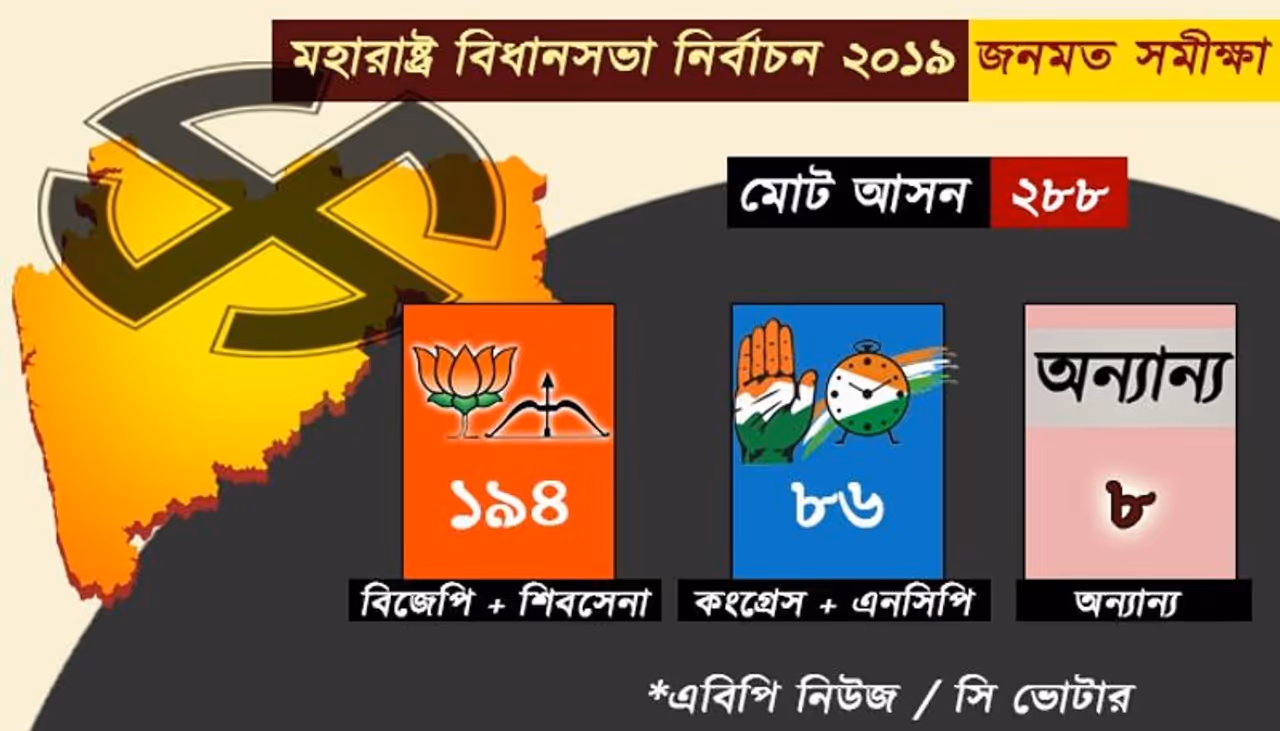 মহারাষ্ট্রে ২০১৪ সালে ১২২টি আসন জিতে সর্ববৃহত দল হিসেবে আত্মপ্রকাশ করেছিল বিজেপি। তারা একক ভাবেই সরকার গড়েছিল। পরে ৬৩ আসন জেতা শিবসেনা সরকারে য়োগ দিয়েছিল। আর কংগ্রেস পেয়েছিল ৪২টি, এনসিপি ৪১টি। এই বার জোট হিসেবেই ভোট লড়ছে বিজেপি শিবসেনা। জনমত সমীক্ষার ফল বলছে ২৮৮টি আসনের মধ্যে এই জোট পেতে পারে ১৯৪টি আসন। আর কংগ্রেস-এসিপি জোটের ঝুলিতে যাবে মাত্র ৮৬টি আসন।