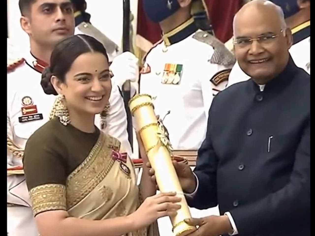প্রাক্তন বিদেশ মন্ত্রী প্রয়াত সুষমা স্বরাজ, অলিম্পিয়ান পিভি সিন্ধু এবং অভিনেতা কঙ্গনা রানাউত বিশিষ্ট ব্যক্তিত্বদের মধ্যে ছিলেন যাদের সোমবার রাষ্ট্রপতি রাম নাথ কোবিন্দ পদ্ম পুরস্কারে ভূষিত করেন। রাষ্ট্রপতি ভবনে আয়োজিত এক অনুষ্ঠানে পদ্ম পুরস্কার প্রদান করা হয়।স্বরাজকে মরণোত্তর পদ্মবিভূষণ পুরস্কারে সম্মানিত করা হয়। রাষ্ট্রপতি রাম নাথ কোবিন্দের কাছ থেকে পুরস্কার গ্রহণ করেন তার মেয়ে বাঁসুরি স্বরাজ। মরণোত্তর পদ্ম বিভূষণে সম্মানিত হয়েছেন প্রয়াত অরুণ জেটলিও (Arun Jaitley)। তাঁর স্ত্রী রাষ্ট্রপতির হাত থেকে এদিন পুরস্কার গ্রহণ করেছেন।