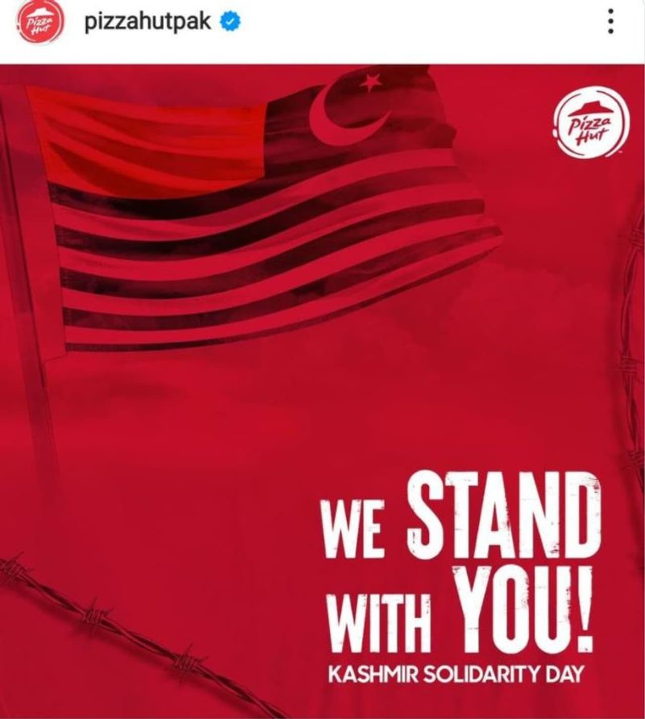 পিৎজা হাট পাকিস্তানের ফেসবুক পেজে কাশ্মীরের সঙ্গে 'সংহতি' নিয়ে একটি পোস্ট আপলোড করা হয়। ৫ ফেব্রুয়ারি ওই পোস্ট করা হয়েছিল। লাল রঙের পাকিস্তানি পতাকা দেওয়া একটি ছবি পোস্ট করা হয়েছিল।
