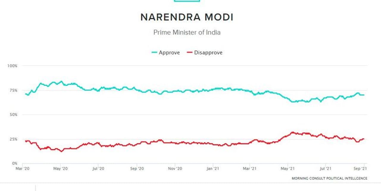 প্রাপ্ত বয়স্কদের মধ্যে এই সমীক্ষা করা হয়েছিল। মার্কিন যুক্তরাষ্ট্রের মর্নিং কনসালটেন্ট পলিটিক্যাল ইন্টেলিজেন্স এই সমীক্ষাটি করেছিল। বিশ্বের জনপ্রিয় নেতাদের মধ্যেই সমীক্ষাটি করা হয়েছিল। তাতে ৭০ শতাংশেরও বেশি সমর্থন পেয়ে প্রথম হয়েছেন মোদী। দ্বিতীয় স্থানে রয়েছেন,মেক্সিকোর প্রেসিডেন্ট আন্দ্রেস ম্যানিয়েল লোপেজ ওব্রাডর। তৃতীয় স্থানে রয়েছে ইতালির প্রধানমন্ত্রী মারিও ড্রাগি।