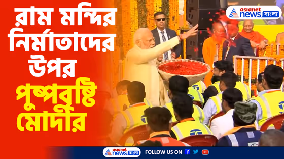 সোমবার অযোধ্যায় রাম মন্দিরে প্রাণ প্রতিষ্ঠার পর শ্রমিকদের সঙ্গে দেখা করেন মোদী। এরপর রাম মন্দির নির্মাণকার্যের সঙ্গে যুক্ত শ্রমিকদের উপর পুষ্পবৃষ্টি করলেন প্রধানমন্ত্রী নরেন্দ্র মোদী।