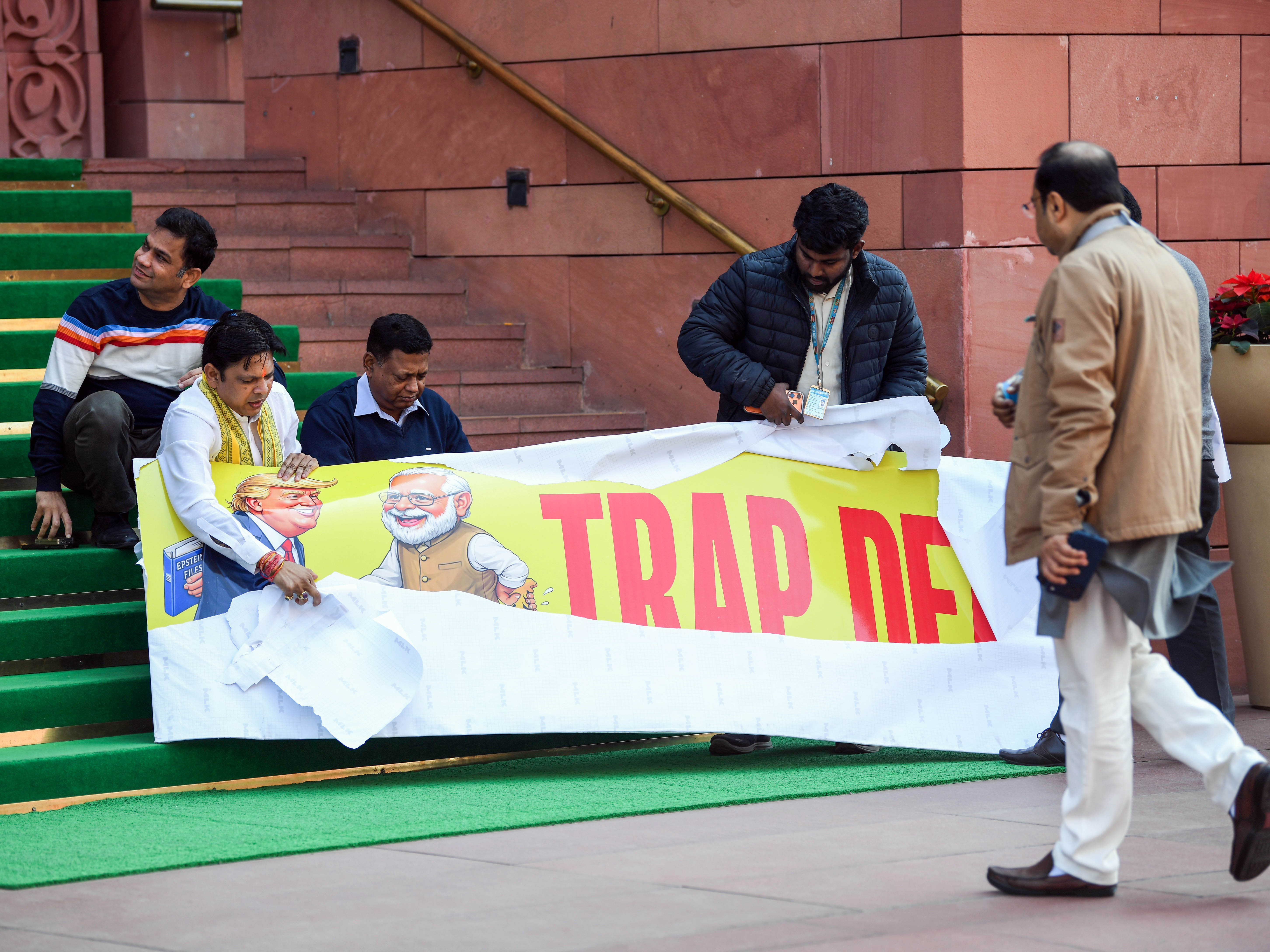 কংগ্রেস নেতা এবং লোকসভার বিরোধী দলনেতা রাহুল গান্ধী শুক্রবার রাজ্যসভায় প্রধানমন্ত্রী নরেন্দ্র মোদীর ভাষণের দিকে কটাক্ষ করে বলেন, "যা উচিত বোঝো তাই করো"। বিরোধী সাংসদরা সংসদের মকর দ্বারে সরকারের বিরুদ্ধে প্রতিবাদ করেন, "যা উচিত বোঝো তাই করো" স্লোগান তোলেন এবং "ফাঁদের চুক্তি" লেখা প্ল্যাকার্ড হাতে নিয়েছিলেন। এদিকে, ব্যাপক স্লোগান ও প্রতিবাদের মধ্যে লোকসভা দিনের জন্য মুলতবি হয়ে যায় এবং ৯ ফেব্রুয়ারি সকাল ১১টায় আবার বসবে। সেই সময়ই রাহুল গান্ধী সংবাদ মাধ্যমের মুখোমুখি হয়ে মোদীকে কটাক্ষ করেন।