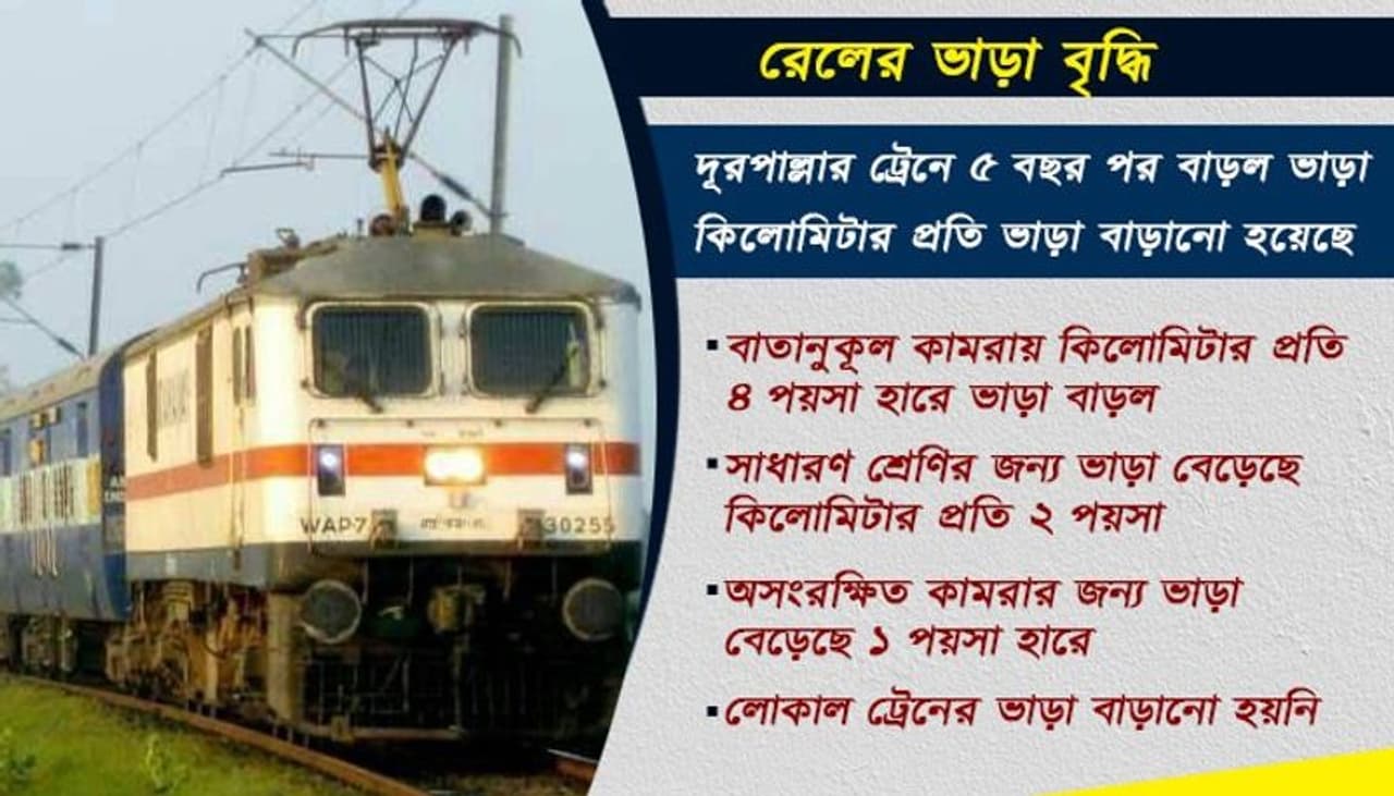 ৫ বছর পর বাড়ল রেলের ভাড়া এক্সপ্রেস ট্রেনর ভাড়া বাড়ানো হল বছরের প্রথম দিনেই বাড়ল ভাড়া আয় বাড়াতেই ভাড়া বৃদ্ধির সিদ্ধান্ত