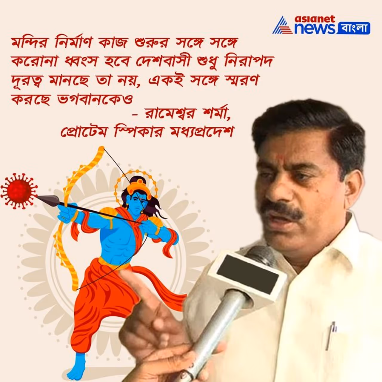 মধ্যপ্রদেশের প্রোটেম স্পিকার তথা বিজেপি নেতার কথায় ভগবান শ্রী রাম মানবজাতির কল্যাণ ও অশুভ শক্তির বিনাশের জন্যই পুনর্জম্ম গ্রহণ করেছিলেন। তাই মন্দির নির্মাণ শুরু হওয়ার সঙ্গে সঙ্গেই কোভিড মহামারী ধ্বংস হতে শুরু করবে বলেও দাবি করেছেন তিনি। তিনি আরও বলেন করোনাভাইরাসের কারণে শুধু যে ভারত সমস্যায় পড়েছে তা নয়। বিশ্বের অধিকাংশ দেশই সমস্যার সম্মুখীন হয়েছে। এই অবস্থায় ভারতীয়রা যে শুধু শারীরিক নিরাপদ দূরত্ব বজায় রেখে চলছে তা নয়, দেশবাসী ভগবানের কথাও স্মরণ করছে। একই সঙ্গে তিনি বলেন সুপ্রিম কোর্ট আদেশ দিয়েছে অযোধ্যায় রাম মন্দির শুরু করার। কয়েক দিন পরেই ভূমি পুজোর অনুষ্ঠান হবে।