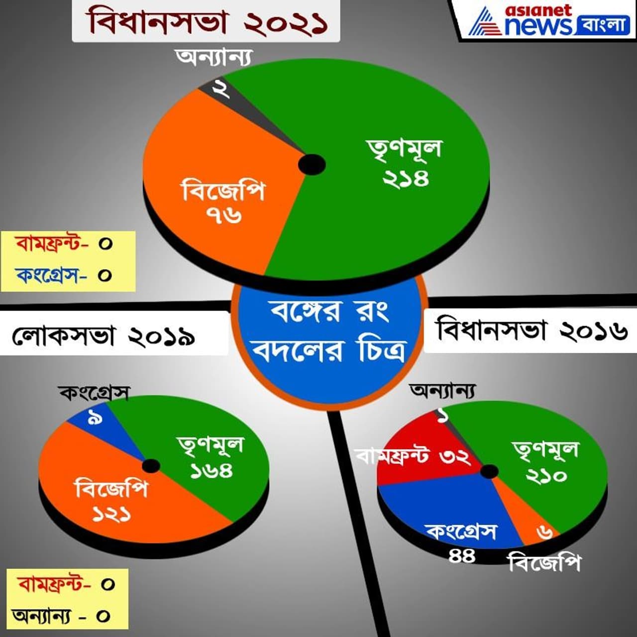 মমতা বন্দ্যোপাধ্যায়ের (Mamata Banerjee) নেতৃত্বে তৃণমূল কংগ্রেসের (TMC) ২০২১ সালের বাংলা বিধানসভা জয় ছিল ল্যান্ডস্লাইড ভিক্ট্রি। তাঁর সামনে রয়েছে বুদ্ধদেব ভট্টাচার্যের নেতৃত্বে ২০০০৯ সালে বামেদের বাংলা জয়ের রেকর্ড। কারণ সেই সময় বামেরা ২৯৪ আনের পশ্চিমবঙ্গ বিধানসভায় ২৩৪টি আসন জয় করেছিল। যাইহোক তারপর গঙ্গা দিয়ে বয়ে গেছে অনেক জল। ২০১১ সালের পালাবদল। ২০১৬ সালে বাম-কংগ্রেস জোটকে ধরাসায়ী করে দ্বিতীয়বার বাংলা দখল করেছিলেন মমতা। তবে এবার বাম-কংগ্রেস নয়, বিধানসভা নির্বাচনে তৃণমূল কংগ্রেসের প্রধান প্রতিপক্ষ ছিল বিজেপি। মোদী অমিত শার নেতৃত্বে গেরুয়া শিবিরকেও ধরায়াসী করে তৃতীয়বারের জন্য বাংলা জয় করলেন মমতা বন্দ্যোপাধ্যায়।