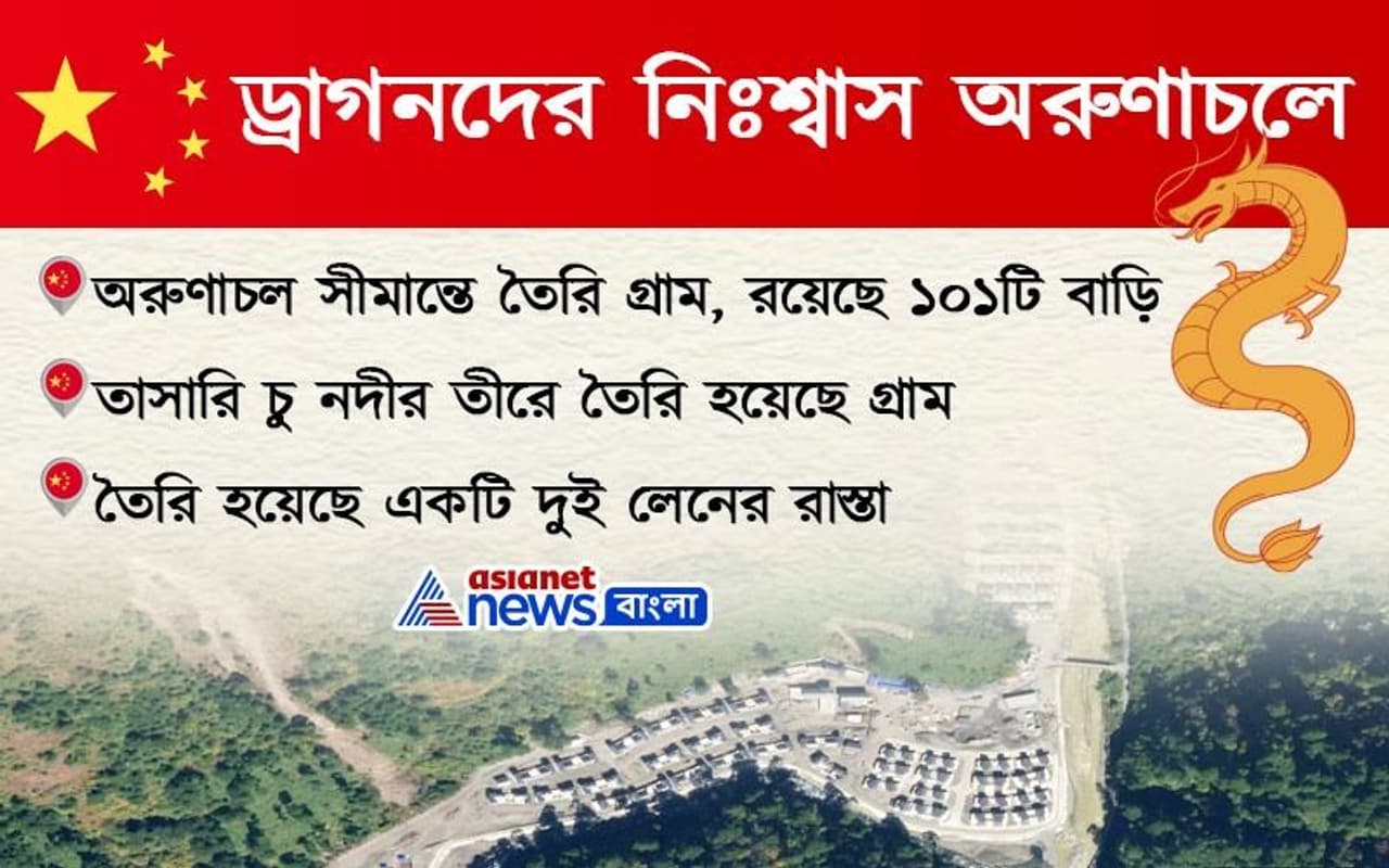 অরুণাচল সীমান্তে গ্রাম তৈরি রয়েছে ১০১টি বাড়ি ডি-ফ্যাক্টো সীমান্তে ভারতীয় ভূখণ্ডের ভিরতে প্রায় ৪.৫ কিলোমিটার ভিতরে