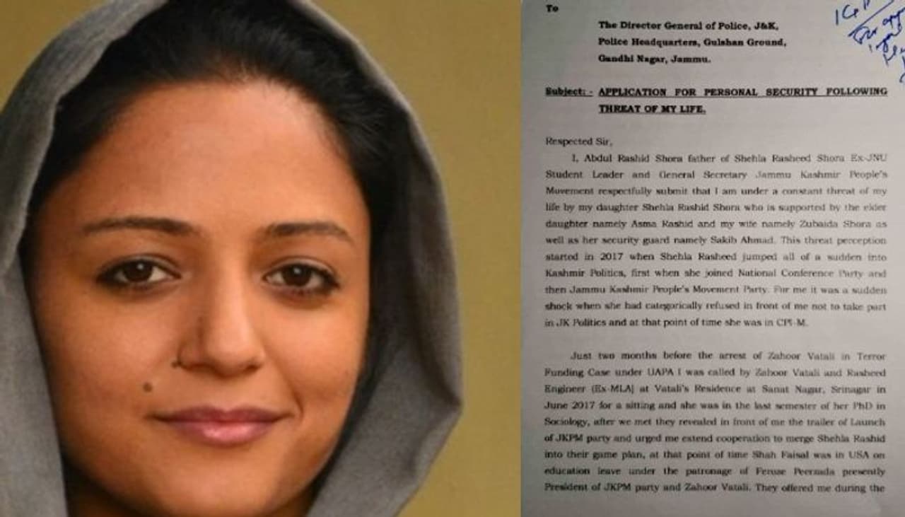 মেয়ের বিরুদ্ধে দেশবিরোধী কার্যকলাপের অভিযোগ  জেএনইউর ছাত্র নেতা শেহলা রশিদের বাবার অভিযোগ  প্রশ্ন তুললেন জেকেপিপির রাজনৈতিক তহবিল নিয়ে  তদন্তের পাশাপাশি নিজের নিরাপত্তার আর্জি জানিয়েছেন তিনি
