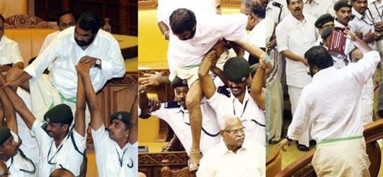 উল্লেখ্য, ২০১৫ সালের ১৩ই মার্চ রাজ্য বিধানসভার অধিবেশন চলাকালীন নিন্দনীয় পরিস্থিতি তৈরি হয়। তৎকালীন বিরোধী বিধায়করা তৎকালীন অর্থমন্ত্রী কে এম মণিকে রাজ্য বাজেট পেশে বাধা দেওয়া চেষ্টা করে। অর্থমন্ত্রীর বিরুদ্ধে দুর্নীতির অভিযোগে উত্তাল হয়ে ওঠে বিধানসভা। পোডিয়াম থেকে স্পিকারের চেয়ারটি উড়িয়ে দেওয়ার পাশাপাশি প্রিসাইডিং অফিসারের ডেস্কে কম্পিউটার, কী বোর্ড এবং মাইকের মতো বৈদ্যুতিন সরঞ্জামগুলিও এলডিএফ সদস্যরা ক্ষতিগ্রস্থ করেছিল বলে অভিযোগ রয়েছে।