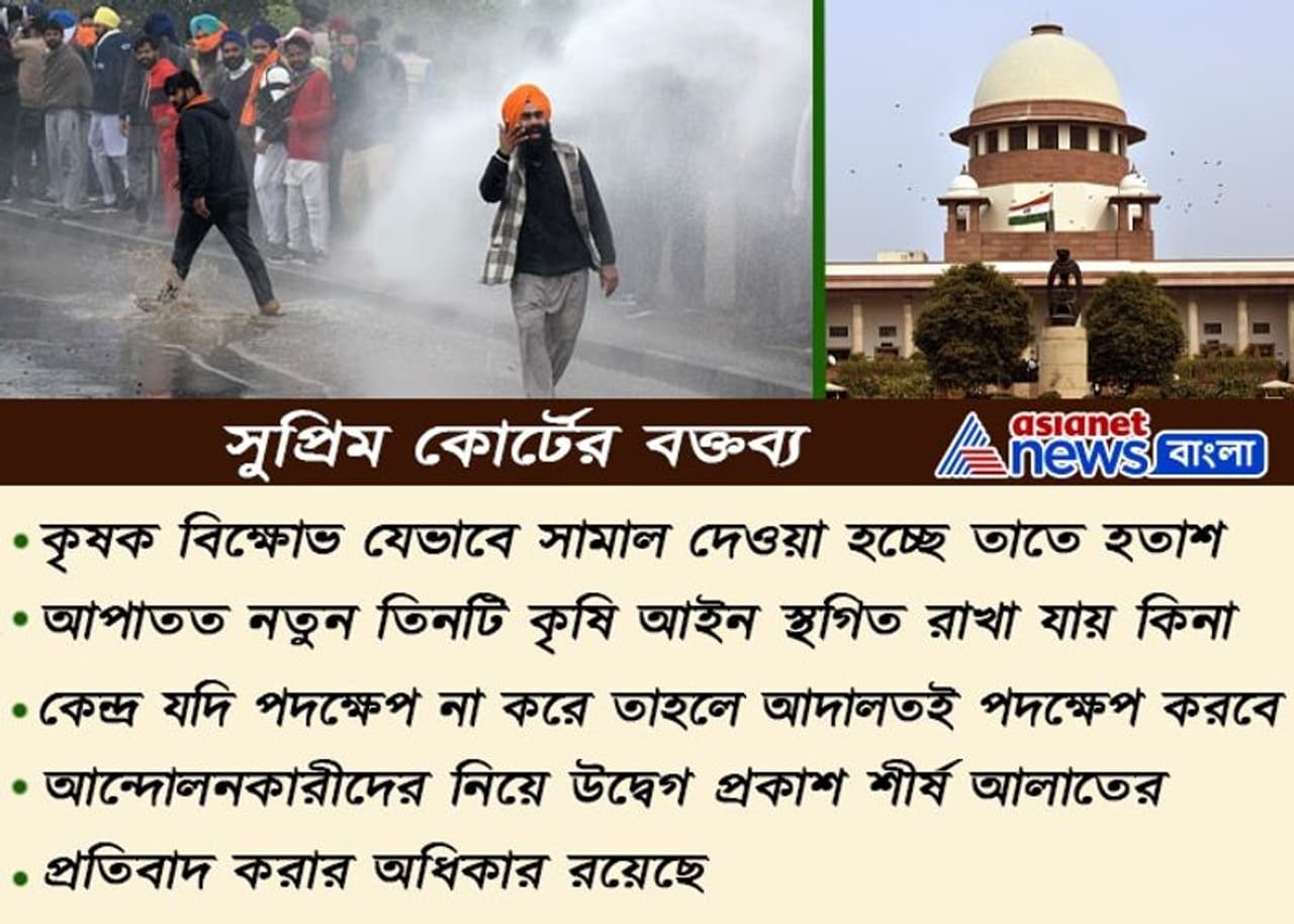 কৃষক বিক্ষোভ যেভাবে সামাল দেওয়া হচ্ছে তাতে হতাশ আপাতত নতুন তিনটি কৃষি আইন স্থগিত রাখা যায় কিনা কেন্দ্র যদি পদক্ষেপ না করে তাহলে আদালতই পদক্ষেপ করবে