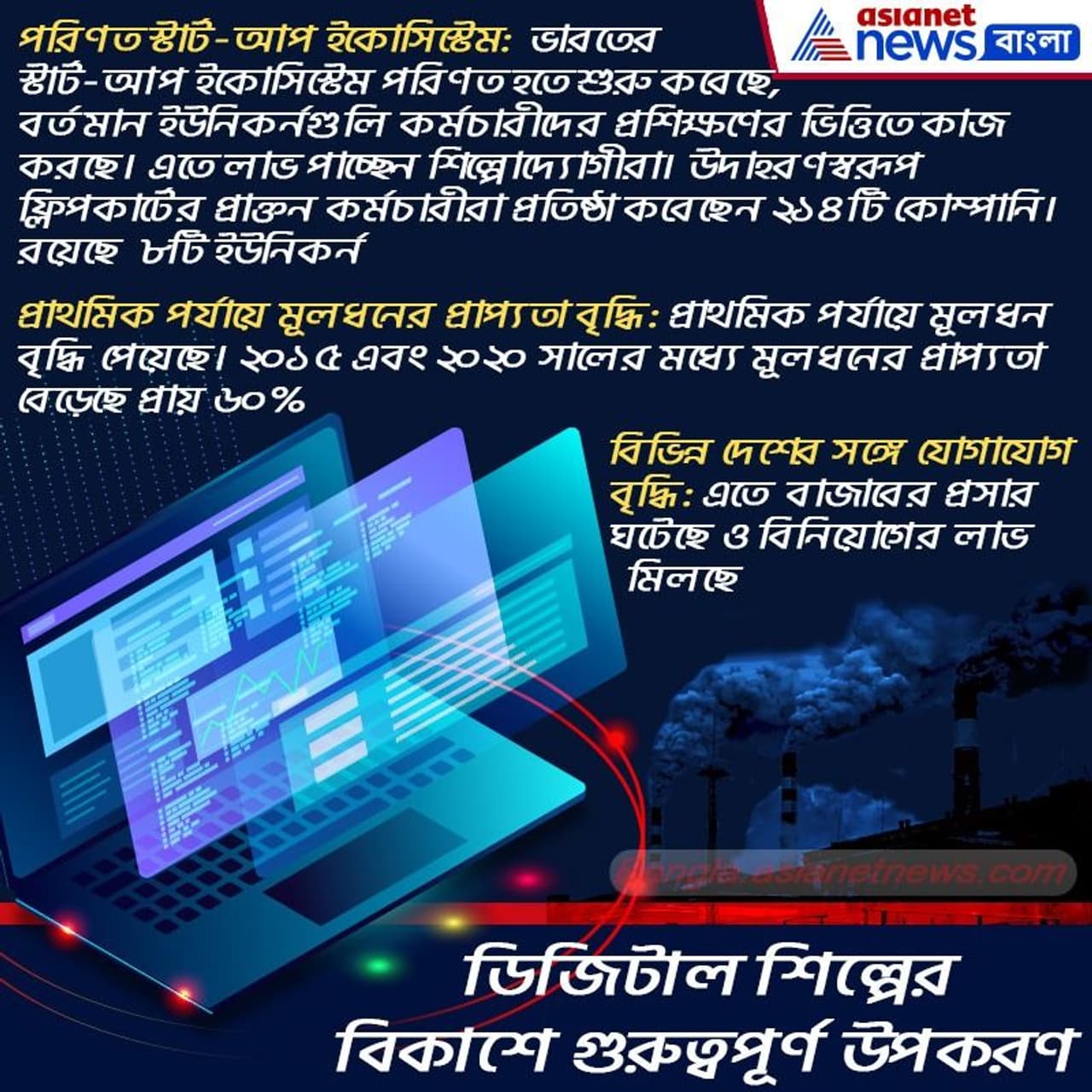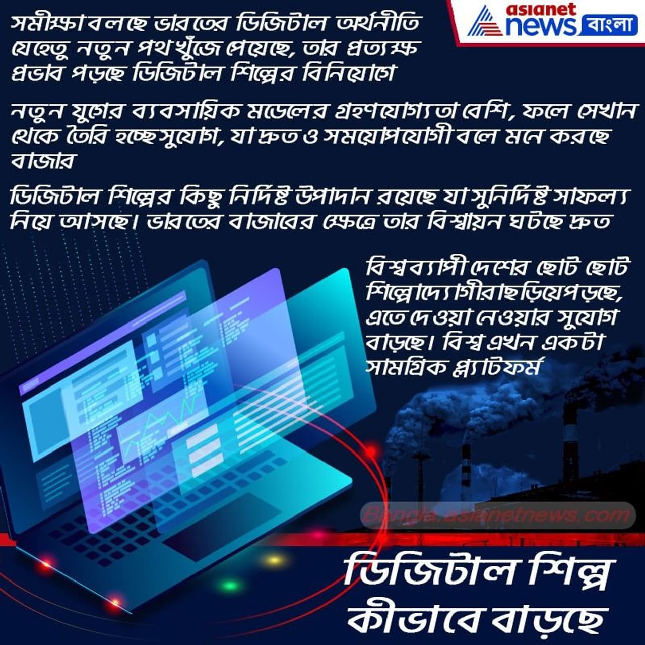 ১. সমীক্ষা বলছে ভারতের ডিজিটাল অর্থনীতি যেহেতু নতুন পথ খুঁজে পেয়েছে, তার প্রত্যক্ষ প্রভাব পড়ছে ডিজিটাল শিল্পের বিনিয়োগে।
