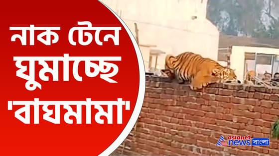 পাঁচিলের উপর হাত পা ছড়িয়ে নাক টেনে ঘুম 'বাঘমামা'র, মুহূর্তে ভাইরাল ভিডিও!
