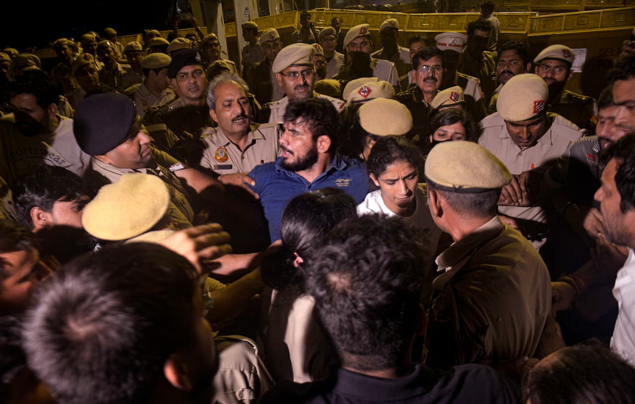 ভারতীয় কুস্তি সংস্থার সভাপতি তথা উত্তরপ্রদেশের বিজেপি নেতা ব্রিজভূষণ শরণ সিংহের বিরুদ্ধে যৌন হেনস্থার অভিযোগ এনেছেন ভারতের বিখ্যাত কুস্তিগিররা। ব্রিজভূষণের গ্রেফতারি চেয়ে দিল্লির যন্তরমন্তরে একটানা আন্দোলন চালিয়ে যাচ্ছেন তাঁরা। সেই আন্দোলনস্থলেই কুস্তিগিরদের সঙ্গে ধুন্ধুমার বেঁধে গেল দিল্লি পুলিশের। বুধবার মধ্যরাতের এই ঘটনায় রণক্ষেত্রের চেহারা নিল দেশের রাজধানী।