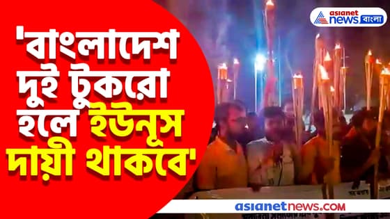 'বাংলাদেশ দুই টুকরো হলে ইউনূস দায়ী থাকবে' মশাল হাতে মিছিল বাংলাদেশী হিন্দুদের
