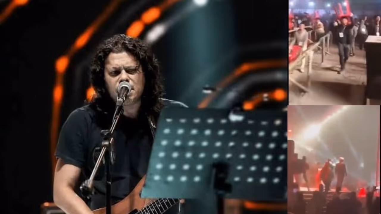 দিন যত যাচ্ছে ততই নতুন করে চড়ছে বাংলাদেশে অশান্তির আগুন। এবার রক তারকা জেমস ও তার ব্যান্ডের অনুষ্ঠান ভেস্তে গেল বাংলাদেশে। অনুষ্ঠানের মাঝেই হামলাকারীদের তাণ্ডব। মুহুর্তের মধ্যে ভুণ্ডুল গোটা অনুষ্ঠান। এমনকি বিক্ষোভের জেরে গায়ককেও দ্রুত মঞ্চ ছাড়তে হয়। শুক্রবারের এই ঘটনার খবর সোশ্যাল মিডিয়ায় ভাইরাল হতেই বয়ে গিয়েছে নিন্দার ঝড়।
