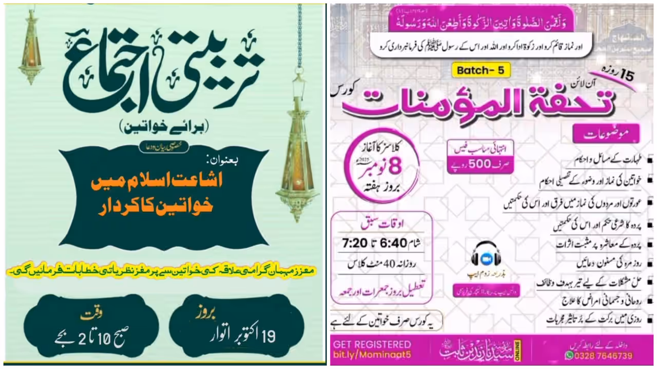 সংগঠনকে শক্তিশালী করতে এবং মহিলা ব্রিগেডে আরও বেশি মহিলা নিয়োগের জন্য এই কোর্সের অধীনে জইশ-ই-মহম্মদের নেতাদের পরিবারের মহিলা সদস্যরা, যার মধ্যে মাসুদ আজহার এবং তার কমান্ডারদের আত্মীয়রাও রয়েছে, মহিলাদের জিহাদ, ধর্ম এবং ইসলামের দৃষ্টিকোণ থেকে তাদের কর্তব্য শেখাবে। অনলাইন লাইভ লেকচারের মাধ্যমে এই নিয়োগ প্রক্রিয়া ৮ নভেম্বর থেকে শুরু হওয়ার কথা। প্রতিদিন ৪০ মিনিটের জন্য অনলাইন মিটিং প্ল্যাটফর্মের মাধ্যমে মাসুদ আজহারের দুই বোন, সাদিয়া আজহার এবং সামাইরা আজহার, মহিলাদের জইশ-ই-মহম্মদের মহিলা ব্রিগেড জামাত উল-মুমিনাতে যোগ দিতে উৎসাহিত করার জন্য ক্লাস পরিচালনা করবে।