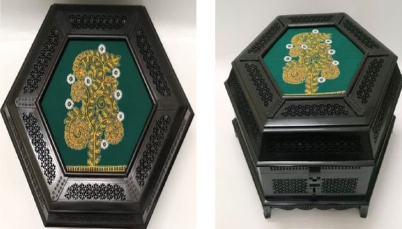 জাপানের প্রধানমন্ত্রীকে প্রধানমন্ত্রীর উপহার: রোগান পেইন্টিং সহ কাঠের হাতে খোদাই করা বাক্স