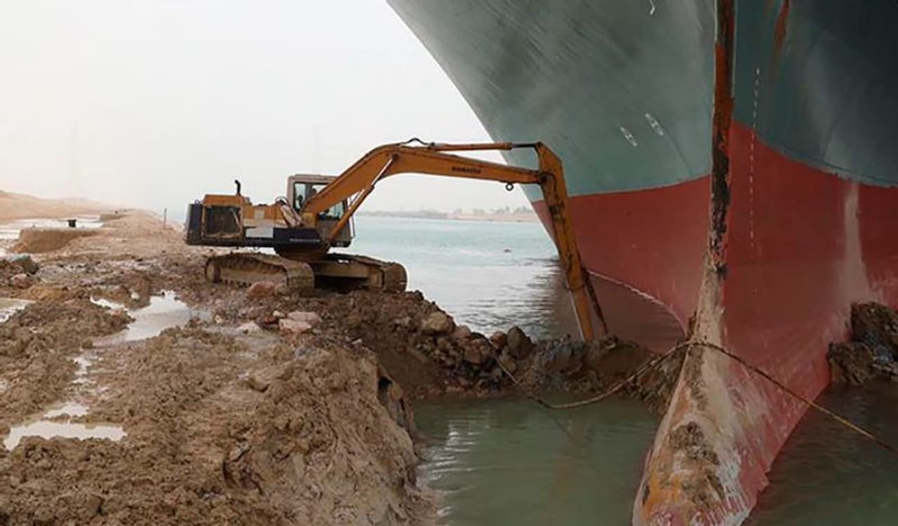এমভি এবার গ্যাভেন, যা চারটি ফুটবল মাঠের চেয়েও লম্বা একটি কন্টেনার জাহাজ। গত মঙ্গলবারই সুয়েজ খালে আটকে গিয়েছিল। তির্যকভাবে আটকে যাওযায় সেটি আর বার হতে পারছে না। সুয়েজখাল কর্তৃপক্ষ মনে করছে শুধুমাত্র আবহাওয়ায় এর জন্য দায়ী নয়। এই ঘটনার পেছনে মানুষেরও হাত থাকতে পারে। তবে ড্রেজার দিয়ে বালি সরিয়ে জাহাজটি চালু করার চেষ্টা করছে। তবে জাহাজটি মুক্ত করতে আরও একসপ্তাহ লাগতে পারে। বালি কাটা হয়ে গেলে জোয়ারের জলে তা সরিয়ে নেওয়া হতে পারে বলেও জানিয়েছ কর্তৃপক্ষ। তবে জাহাজটি দাঁড়িয়ে থাকায় বিশ্বব্যাপী সরবরাহ ব্যাহত হতে পারে বলেও আশঙ্কা করা হয়েছে। তেলসহ গুরুত্বপূর্ণ পণ্য আটকে যেতে পারে।