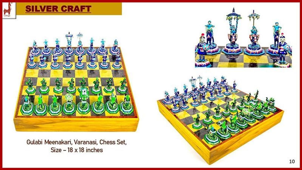 প্রধানমন্ত্রী মোদী হ্যারিসকে একটি গোলাপি মীনাকারী দাবা সেট উপহারও দেন। গোলাপী মীনাকারীর নিপুণ কারুকাজ করা এই সেটটি কাশীর সাথে ওতপ্রোতভাবে জড়িত। কাশী বিশ্বের অন্যতম প্রাচীন শহর এবং প্রধানমন্ত্রী মোদীর লোকসভা কেন্দ্র। দাবা সেটের প্রতিটি টুকরো ও অংশ অসাধারণ হস্তশিল্পে তৈরি, উজ্জ্বল রংগুলি কাশীর স্পন্দনকে প্রতিফলিত করে।