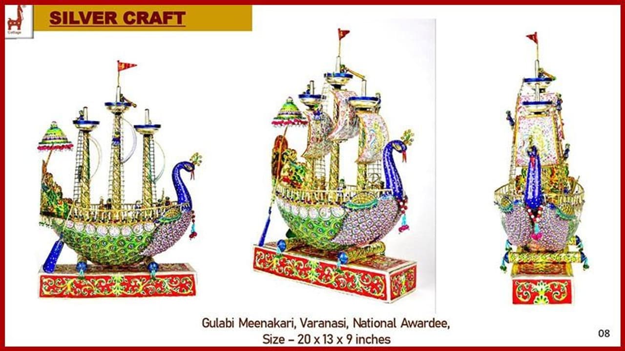 অস্ট্রেলিয়ার প্রধানমন্ত্রী স্কট মরিসনকে একটি রুপোলি গোলাপি মীনাকারী জাহাজ উপহার দেওয়া হয়। জাহাজটি উজ্জ্বল রং দিয়ে হস্তশিল্পে তৈরি, যা কাশীর চিরন্তন গতিশীলতাকে প্রতিফলিত করে।