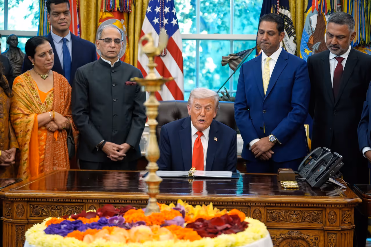 হিন্দু ধর্মাবলম্বীদের অন্যতম প্রধান উৎসব দীপাবলি। সেই উপলক্ষে হোয়াইট হাউসে বিশেষ অনুষ্ঠানের আয়োজন করা হয়। এই অনুষ্ঠানে উপস্থিত ছিলেন এফবিআই পরিচালক কাশ প্যাটেল এবং জাতীয় গোয়েন্দা সংস্থার পরিচালক তুলসি গ্যাবার্ড সহ বিশিষ্ট ব্যক্তিরা। এদিন মার্কিন প্রেসিডেন্ট ডোনাল্ড ট্রাম্পের সামনে ‘রিজলিউট ডেস্ক’-এর ওপর ফুলে সাজানো টেবিলে রাখা ছিল ঐতিহ্যবাহী পাঁচ প্রদীপওয়ালা পিতলের প্রদীপ। অনুষ্ঠানে বক্তব্য রাখতে গিয়ে ট্রাম্প দীপাবলির আধ্যাত্মিক তাৎপর্য তুলে ধরেন। তিনি বলেন, “এই প্রদীপ আলোর অন্ধকারের উপর, জ্ঞানের অজ্ঞানতার উপর এবং শুভের অশুভের উপর বিজয়ের প্রতীক।”