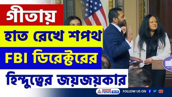 Kash Patel sworn in as FBI director : গীতায় হাত রেখে নিলেন শপথ, আমেরিকায় এই প্রথম হিন্দু এফবিআই ডিরেক্টর হলেন কাশ প্যাটেল। ভগবদ গীতায় হাত রেখে শপথ নিলেন কাশ প্যাটেল। ইউএস অ্যাটর্নি জেনারেল পাম বন্ডি তাকে শপথ বাক্য পাঠ করালেন।