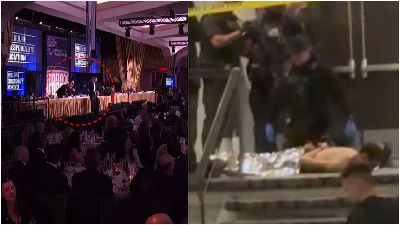 White House Shootout Update: ওয়াশিংটন হিলটনের বাইরে শ্যুটিংয়ের ঘটনার পর সোশ্যাল মিডিয়ায় এক সন্দেহভাজন ব্যক্তির ছবি ভাইরাল হয়েছে। হোয়াইট হাউস করেসপন্ডেন্টস অ্যাসোসিয়েশন ডিনারের সময় এই ঘটনা ঘটে। ছবিতে দেখা যাচ্ছে, সশস্ত্র রক্ষীরা এক ব্যক্তিকে মাটিতে চেপে ধরে রেখেছে। ঠিক কী ঘটনা ঘটেছিল প্রেসিডেন্ট ট্রাম্পের ডিনারের সময়? জানুন আরও বিশদে…