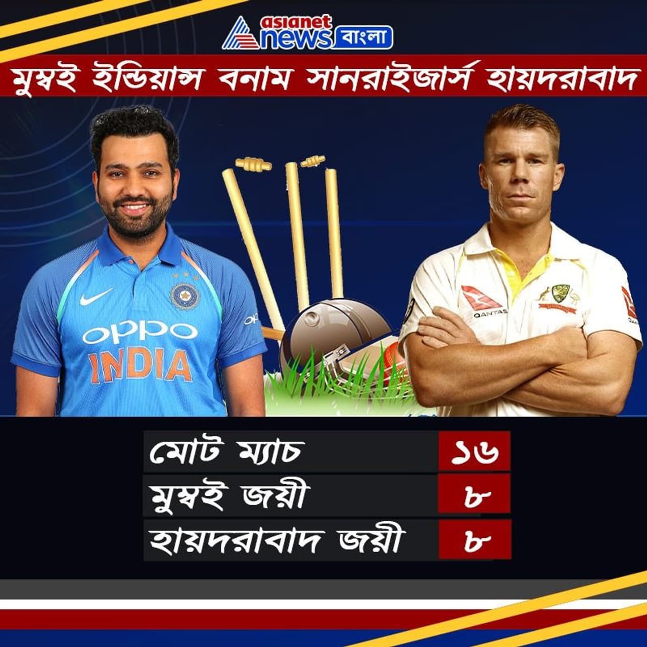 মুম্বই ইন্ডিয়ান্স ৫ বার আইপিএল চ্যাম্পিয়ন হলেও, সানরাইজার্স হায়দরাবাদের বিরুদ্ধে পরিসংখ্যানের নিরিখে কিন্তু খুব একটা এগিয়ে নেই রোহিত শর্মার দল। উল্টে হায়দরাবাদ সমানে সমানে টক্কর দিয়েছে আইপিএলের সবথেকে সফল দলের বিরুদ্ধে। এখনও পর্যন্ত আইপিএলের ইতিহাসে মোট ১৬ বার মুখোমুখি হয়েছে দুই দল। মুম্বই ইন্ডিয়ান্স জিতেছে ৮ বার ও সানরাইজার্স হায়দরাবাদ জিতেছে ৮ বার। আজকের ম্যাচে দুই দলের কাছেই এগিয়ে যাওয়ার সুযোগ রয়েছে।