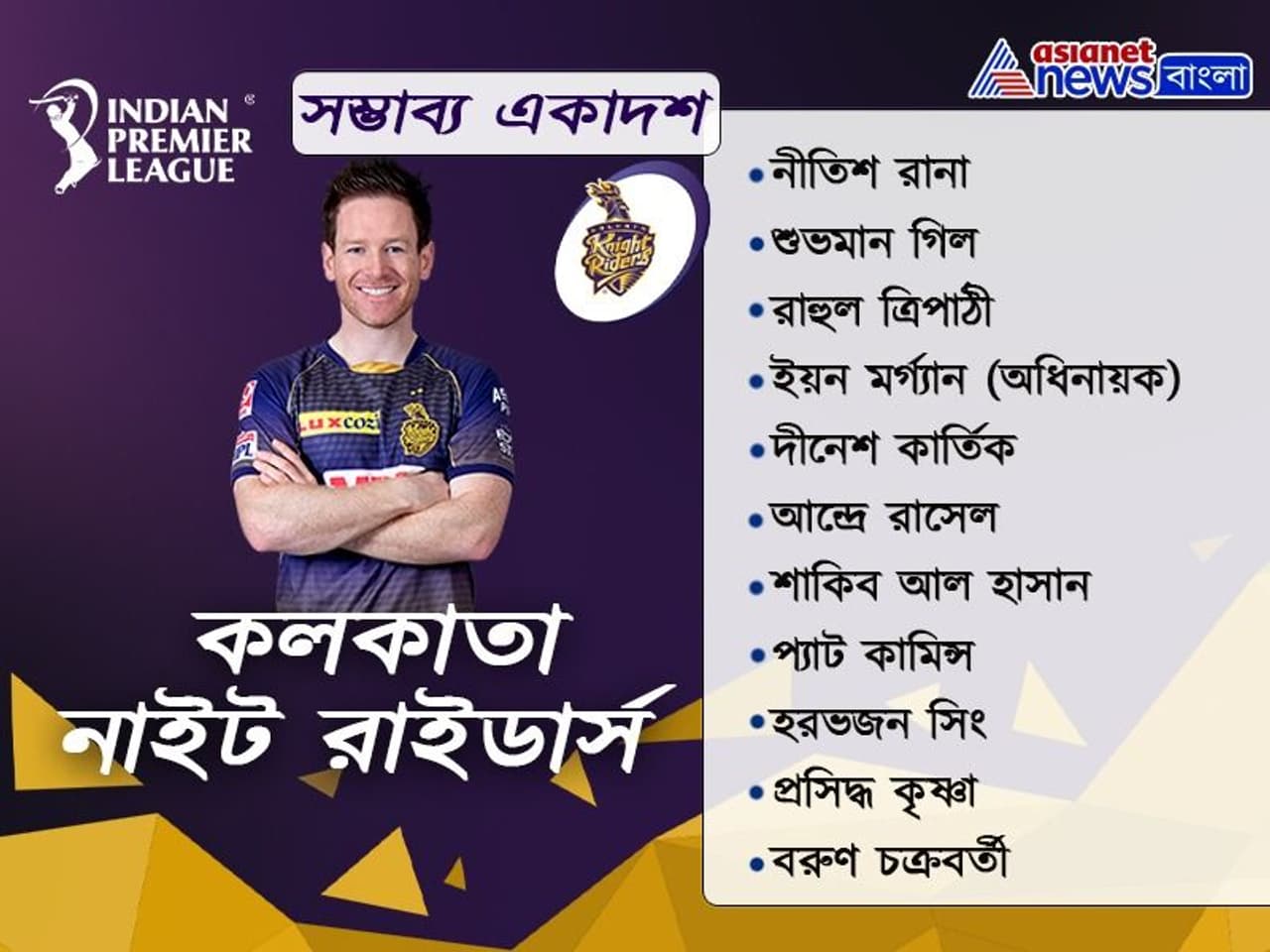 এখনও পর্যন্ত যা খবর, অপরিবর্তিত থাকছে কেকেআরের প্রথম একাদশ। ব্যাটিং লাইনআপে থাকছেন নীতিশ রানা, শুভমান গিল, রাহুল ত্রিপাঠী, ইয়ন মর্গ্যান (অধিনায়ক), দীনেশ কার্তিক ( উইকেট রক্ষক)। অলরাউন্ডারের ভূমিকায় থাকছেন আন্দ্রে রাসেল ও শাকিব আল হাসান। বোলিং লাইনআপে থাকছেন প্যাট কামিন্স, হরভজন সিং, প্রসিদ্ধ কৃষ্ণা, বরুণ চক্রবর্তী।