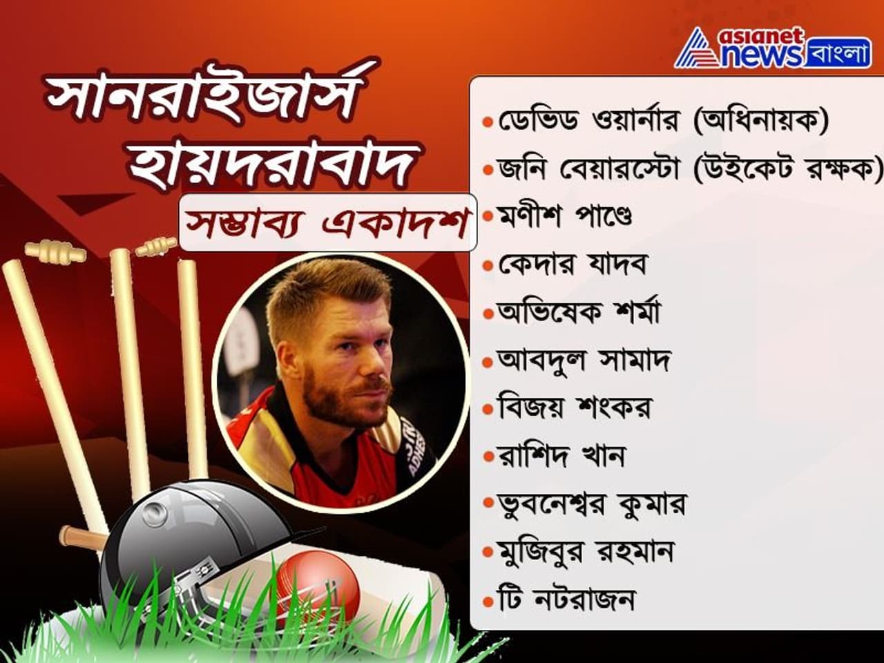 সানরাইজার্স হায়দরাবাদের সম্ভাব্য একাদশ-