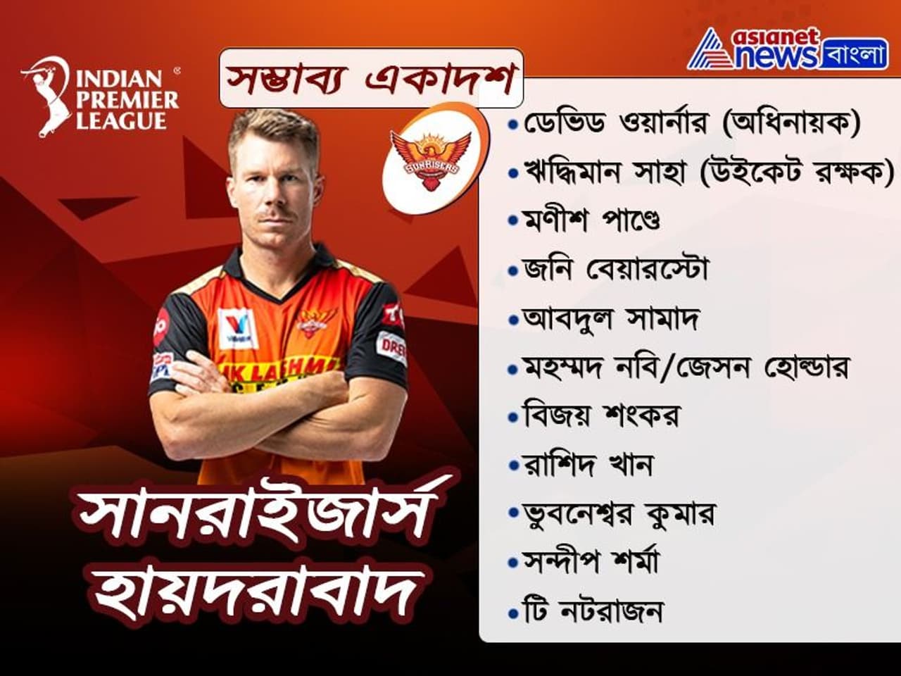 অপরদিকে, সানরাইজার্স হায়দরাবাদ দলে একটি মাত্র পরিবর্তন হওয়ার সম্ভাবনা রয়েছে। আফগান তারকা মহম্মদ নবির জায়গায় সুযোগ পেতে পারেন ক্যারেবিয়ান তারকা জেসন হোল্ডার। তবে প্রথম ম্যাচে বোলিংয়ে ৪ ওভারে ৩২ রান ২ উইকেট পেয়েছিলেন নবি। ফলে তার খেলার সম্ভাবনাই বেশি। হায়দরাবাদের প্রথম একাদশে ওপেনিংয়ের দায়িত্ব সামলাবেন ডেভিড ওয়ার্নার (অধিনায়ক), ঋদ্ধিমান সাহা ( উইকেট রক্ষক)। মিডল অর্ডারে থাকছেন মণীশ পাণ্ডে, জনি বেয়ারস্টো, আবদুল সামাদ। অলরাউন্ডারের ভূমিকায় থাকছেন মহম্মদ নবি/জেসন হোল্ডার, বিজয় শংকর। শেষে বোলিং লাইনআপে থাকছেন রাশিদ খান, ভুবনেশ্বর কুমার, সন্দীপ শর্মা, টি নটরাজন।