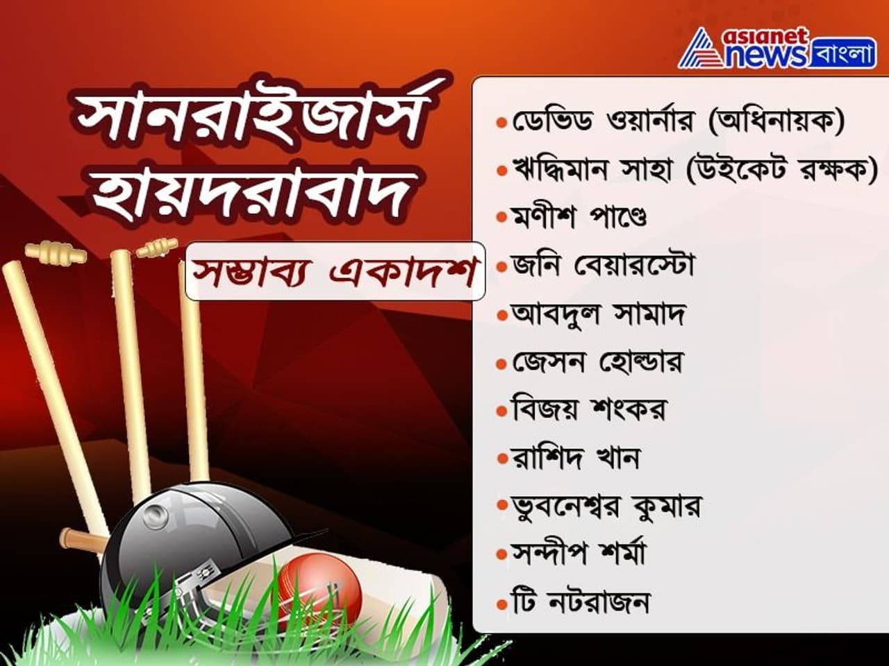 সানরাইজার্স হায়দরাবাদের সম্ভাব্য একাদশ-