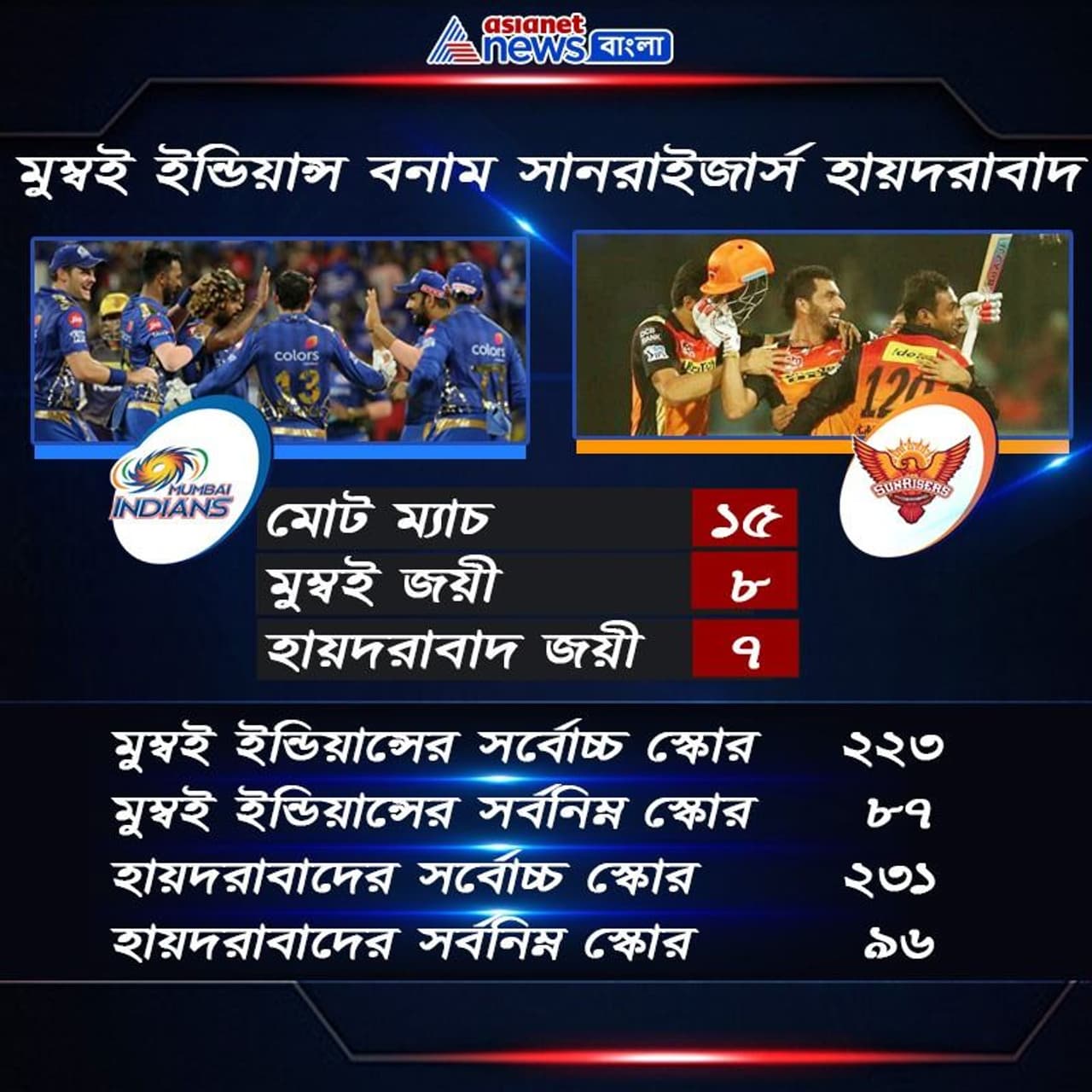দুই দলের মুখোমুখি সাক্ষাতের পরিসংখ্যান কিন্তু হাড্ডাহাড্ডি লড়াইয়ের ইঙ্গিত দিচ্ছে। কারন এখনও পর্যন্ত আইপিএলের ১৫ বার সাক্ষাৎ হয়েছে দুই দলের। তার মধ্যে মুম্বই ইন্ডিয়ান্স জিতেছে ৮ বার ও ৭ বার জিতেছে সানরাইজার্স হায়দরাবাদ। তবে এবারের আইপিএলের হায়দরাবাদের ধারাবাহিকতার অভাব থাকলেও, দুরন্ত ফর্মে রয়েছে মুম্বই। তাই আজকের ম্যাচে মুম্বইকেই এগিয়ে রাখছেন ক্রিকেট বিশেষজ্ঞরা।