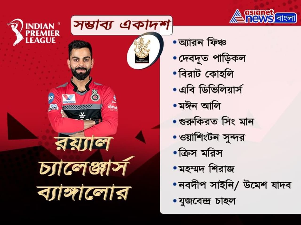 রয়্যাল চ্যালেঞ্জার্স ব্যাঙ্গালোরের সম্ভাব্য একাদশ-