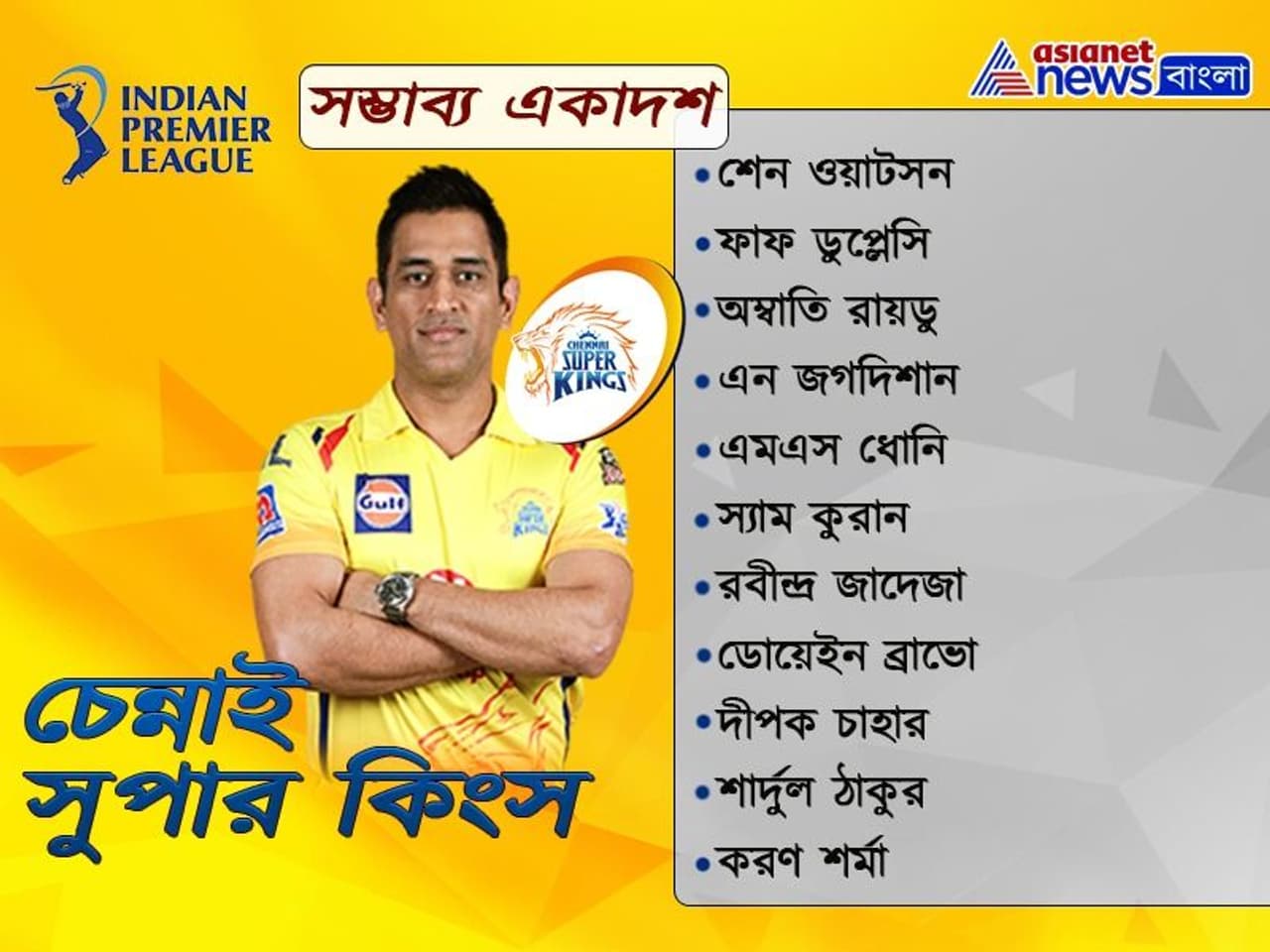 অপরদিকে, চেন্নাই সুপার কিংস দলও অপরিবর্তিত থাকার সম্ভাবনাই বেশি। তবে প্রতিযোগিতায় দেওয়ালে পিঠ ঠেকে গিয়েছে সিএসকের। তাই এখন প্রত্যেকটি ম্যাত তাদের কাছে কার্যত ডু অর ডাই। আজ সানরাইজার্সের বিরুদ্ধে সিএসকের ওপেনিংয়ে থাকছেন শেন ওয়াটসন, ফাফ ডুপ্লেসি। মিডল অর্ডারে থাকছেন অম্বাতি রায়ডু, এন জগদিশান। শেষে হার্ড হিটারের ভূমিকায় থাকছেন অধিনায়ক ধোনি ও অলরাউন্ডার স্যাম কুরান, ডোয়েইন ব্রাভো। বোলিং লাইনআপে থাকছেন দীপক চাহার, শার্দুল ঠাকুর, করণ শর্মা।