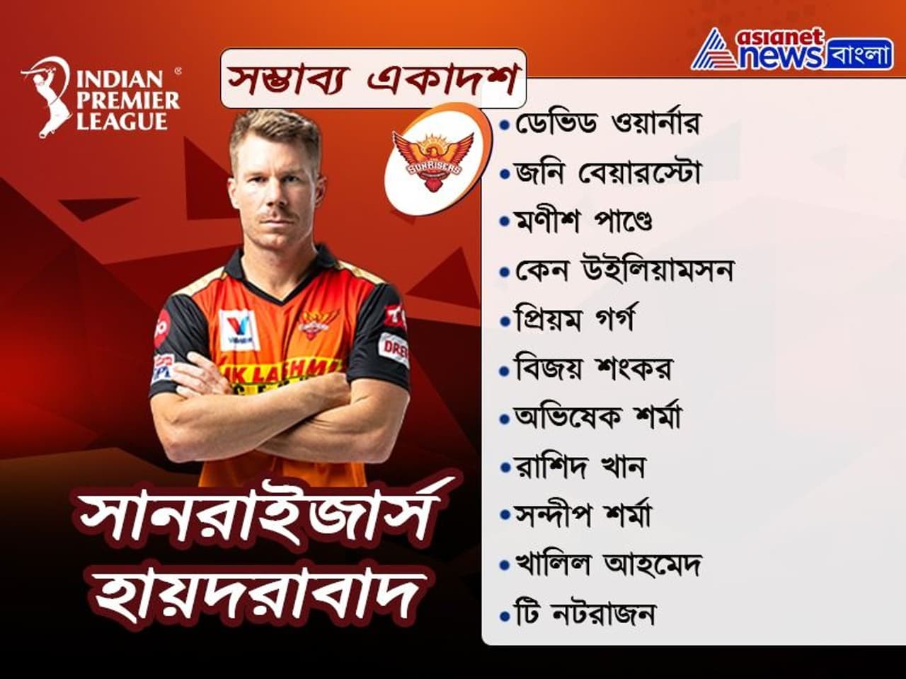 এখনও পর্যন্ত যা খবর অপরিবর্তিত থাকতে চলেছে সানরাইজার্স হায়দরাবাদের দল। ওপেনিংয়ে থাকছেন জনি বেয়ারস্টো ও ডেভিড ওয়ার্নার। রানের মধ্যে রয়েছেন দুজনেই। এছাড়া মিডল অর্ডারে থাকছেন দুই অভিজ্ঞ ব্যাটসম্যান মণীশ পাণ্ডে ও কেন উইলিয়ামসন। ফর্মে রয়েছেন তারাও। তারপর অবশ্য সানরাইজার্সের লোয়ার মিডল অর্ডারে ধারাবাহিকতার অভাব রয়েছে। থাকছেন প্রিয়ম গর্গ, অভিষেক শর্মা ও বিজয় শংকর। বোলিং বিভাগে দুরন্ত ফর্মে রয়েছেন রাশিদ খান। এছাড়াও তাকে সঙ্গ দেওয়ার জন্য থাকছেন সন্দীপ শর্মা, খালিল আহমেদ, টি নটরাজন।