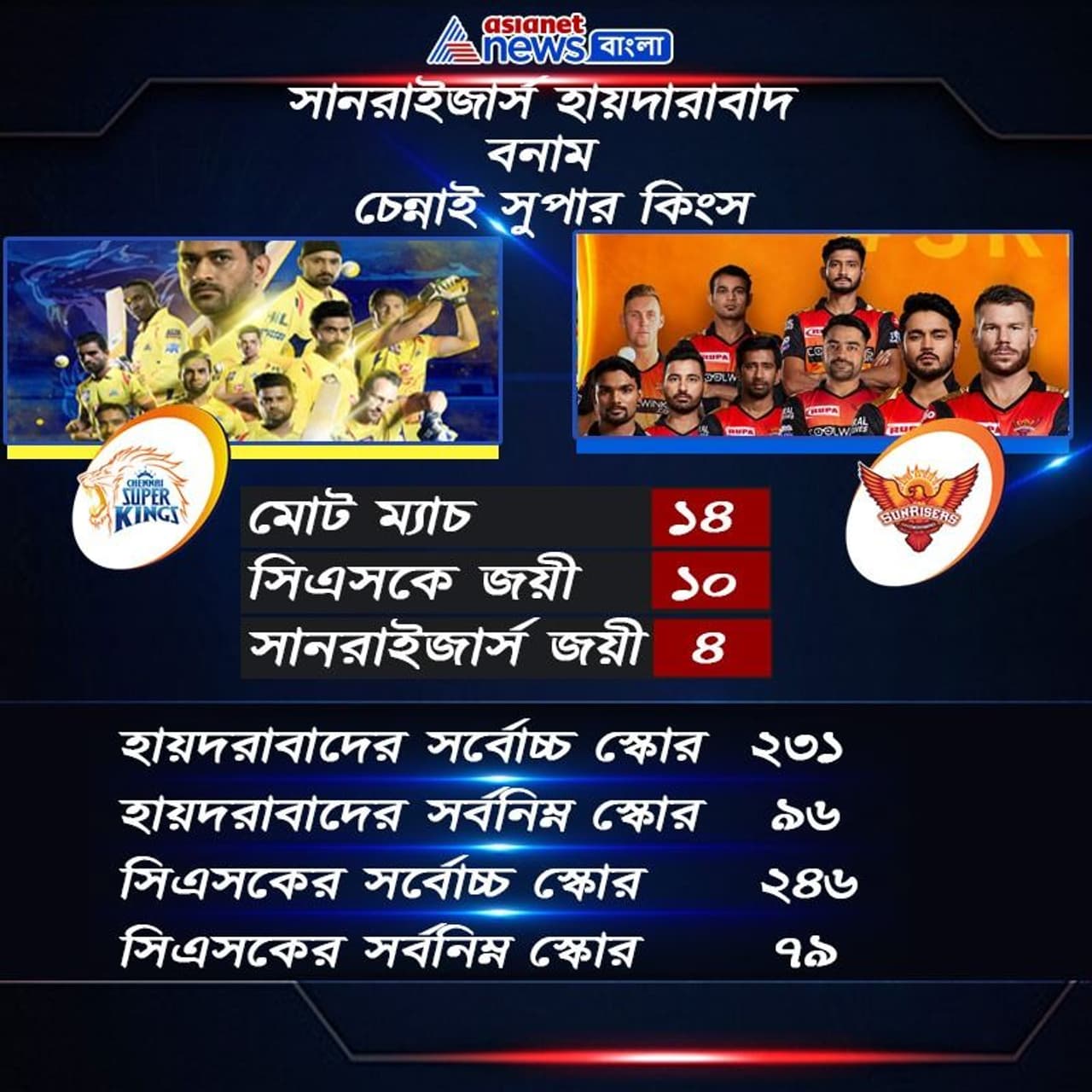 দুই দলের মুখোমুখি সাক্ষাতের পরিসংখ্যান কিন্তু স্বস্তি দিচ্ছে চেন্নাই সুপার কিংস শিবিরকে। এখনও পর্যন্ত আইপিএলের ইতিহাসে মোট ১৪ বার সাক্ষাৎ হয়েছে দুই দলের। তার মধ্যে চেন্নাই সুপার কিংস জিতেছে ১০ বার ও সানরাইজার্স হায়দরাবাদ জিতেছে ৪ বার। তবে এবারের পরিস্থিতি সম্পূর্ণ আলাদা। নিজেদের সেরা ফর্মে নেই সিএসকে। দারাবাহিকতার অভাব রয়েছে সানরাইজার্সেরও। তাই আজ দুবাইতে আরও একটি হাড্ডাহাড্ডি ম্যাচ দেখার অপেক্ষায় ক্রিকেট প্রেমিরা।