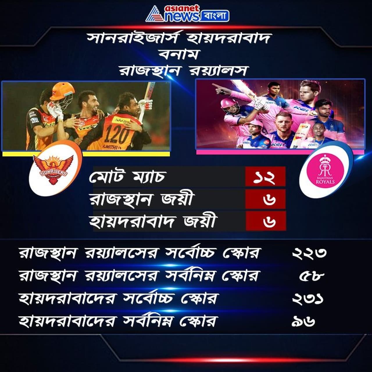 দুই দলের মুখোমুখি সাক্ষাতের পরিসংখ্যান কিন্তু হাড্ডাহাড্ডি ম্যাচরই ইঙ্গিত দিচ্ছেন। কারণ এখনও পর্যন্ত আইপিএলের ইতিহাসে মোট ১২ বার মুখোমুখি হয়েছে দুই দল। তার মধ্যে রাজস্থান রয়্যালস জিতেছে ৬ বার ও সানরাইজার্স হায়দরাবাদ জিতেছে ৬ বার। ফলে আজ দুবাইতে আরও একটি রুদ্ধশ্বাস ম্যাচ দেখার অপেক্ষায় ক্রিকেট প্রেমিরা।