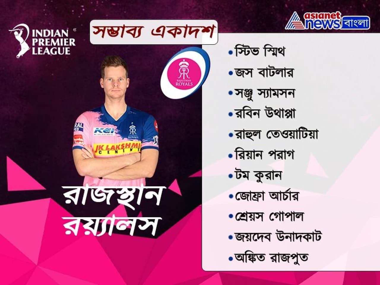 অপরদিকে শেষ ম্যাচ কেকআরের কাছে হারলেও, আরসিবির বিরুদ্ধে জয়ে ফিরতে মরিয়া রাজস্থান রয়্যালস। আজ রাজস্থানও দব মোটামুটি অপরিবর্তিত রাখতে চলেছে। সম্ভাব্য একাদশে ব্যাটিংয়ে থাকছেন, স্টিভ স্মিথ, জস বাটলার, সঞ্জু স্যামসন, রবিন উথাপ্পা, রাহুল তেওয়াটিয়া, রিয়ান পরাগ। বোলিং লাইনআপে থাকছেন টম কুরান, জোফ্রা আর্চার, শ্রেয়স গোপাল, জয়দেব উনাদকাট, অঙ্কিত রাজপুত। গত ম্যাচের ব্যাটিং ব্যর্থতা নিয়ে একটু চিন্তা থাকলেও, এই ম্য়াচে বিরাট কোহলির দলকে হারাতে বদ্ধপরিকর স্টিভ স্মিথের দল।