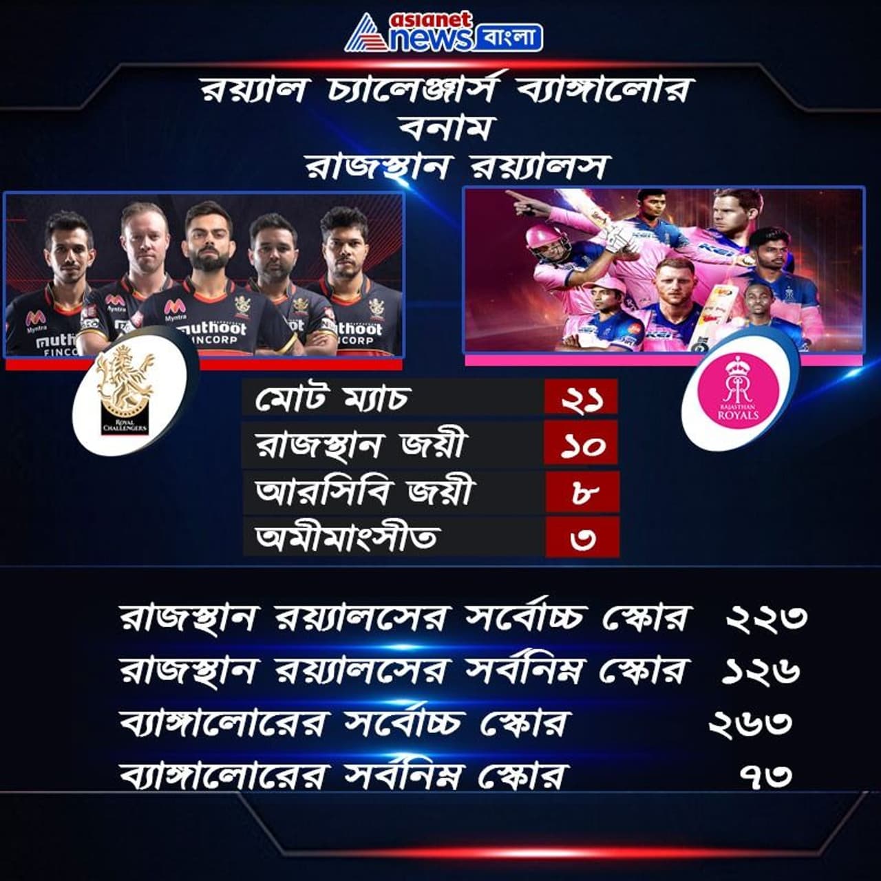 দুই দলের মুখোমুখি সাক্ষাতের পরিসংখ্যানে কিন্তু খুব একটা তফাৎ নেই। আইপিএলের ইতিহাসে মোট ২১ বার মুখোমুখি হয়েছে আরসিবি ও রাজস্থান রয়্যালস। যার রাজস্থান জিতেছে ১০ বার ও ৮ বার জিতেছে ব্যাঙ্গালোর। ফলে আজ আরও একটি হাড্ডাহাড্ডি ম্যাচ দেখার অপেক্ষায় রয়েছে ক্রিকেট বিশ্ব।